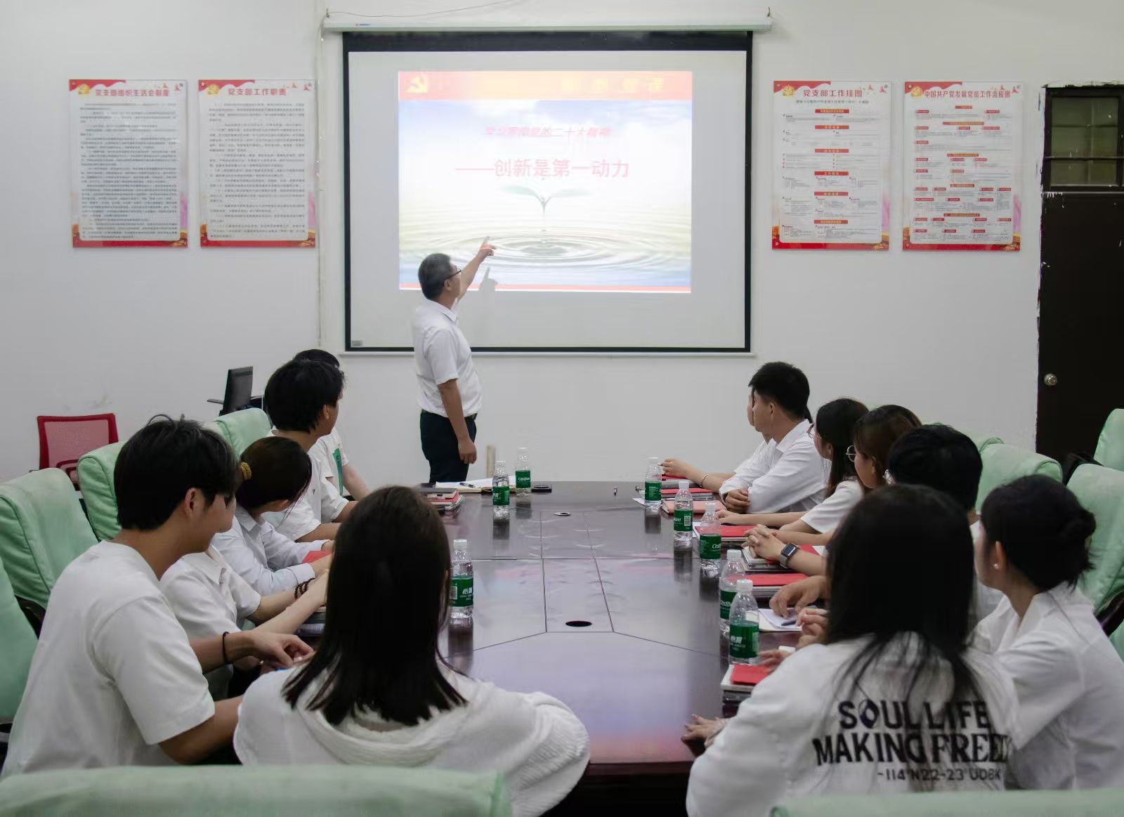 6月18日,太阳集团tyc4633黄守官副书记在4-213会议室为2022级毕业生预备党员讲授毕业前的最后一堂党课,以创新为核心,为同学们带来深刻的思想洗礼。