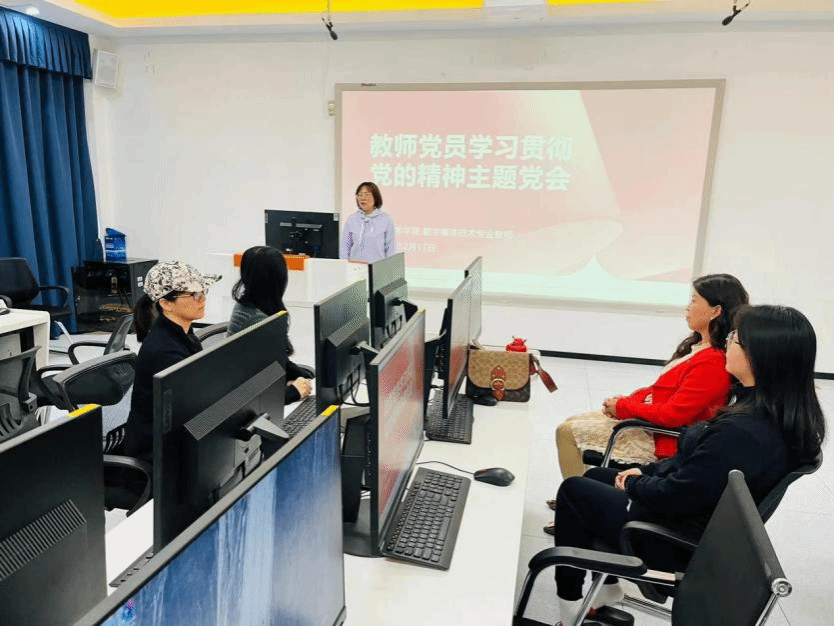 12月17日,公司教工党支部召开学习会,深入学习贯彻“第一议题”制度。本次会议由数字媒体技术专业负责人马清老师主持,专业教师董阁、林珍、张又文、郭蓉佳参会学习。