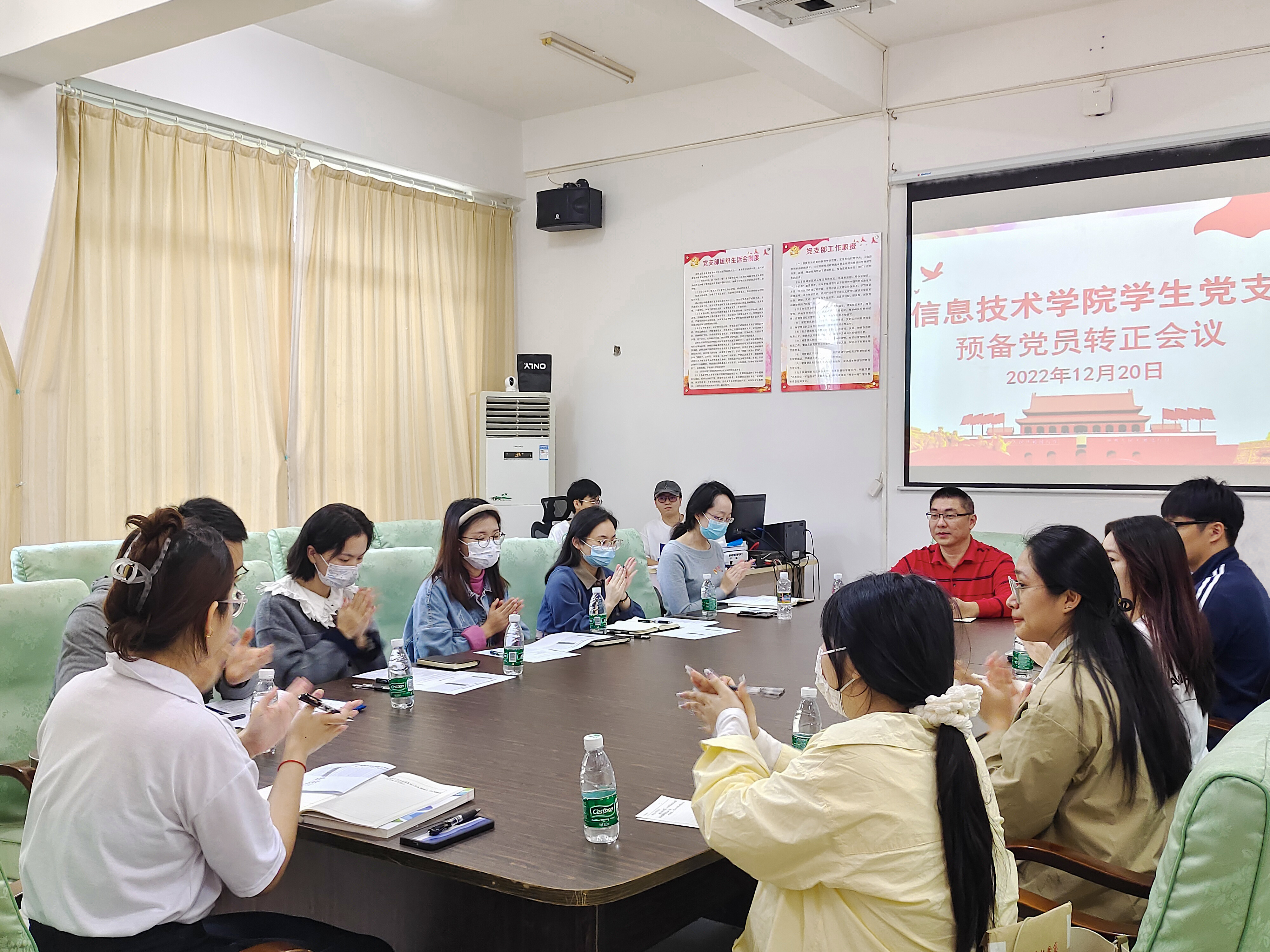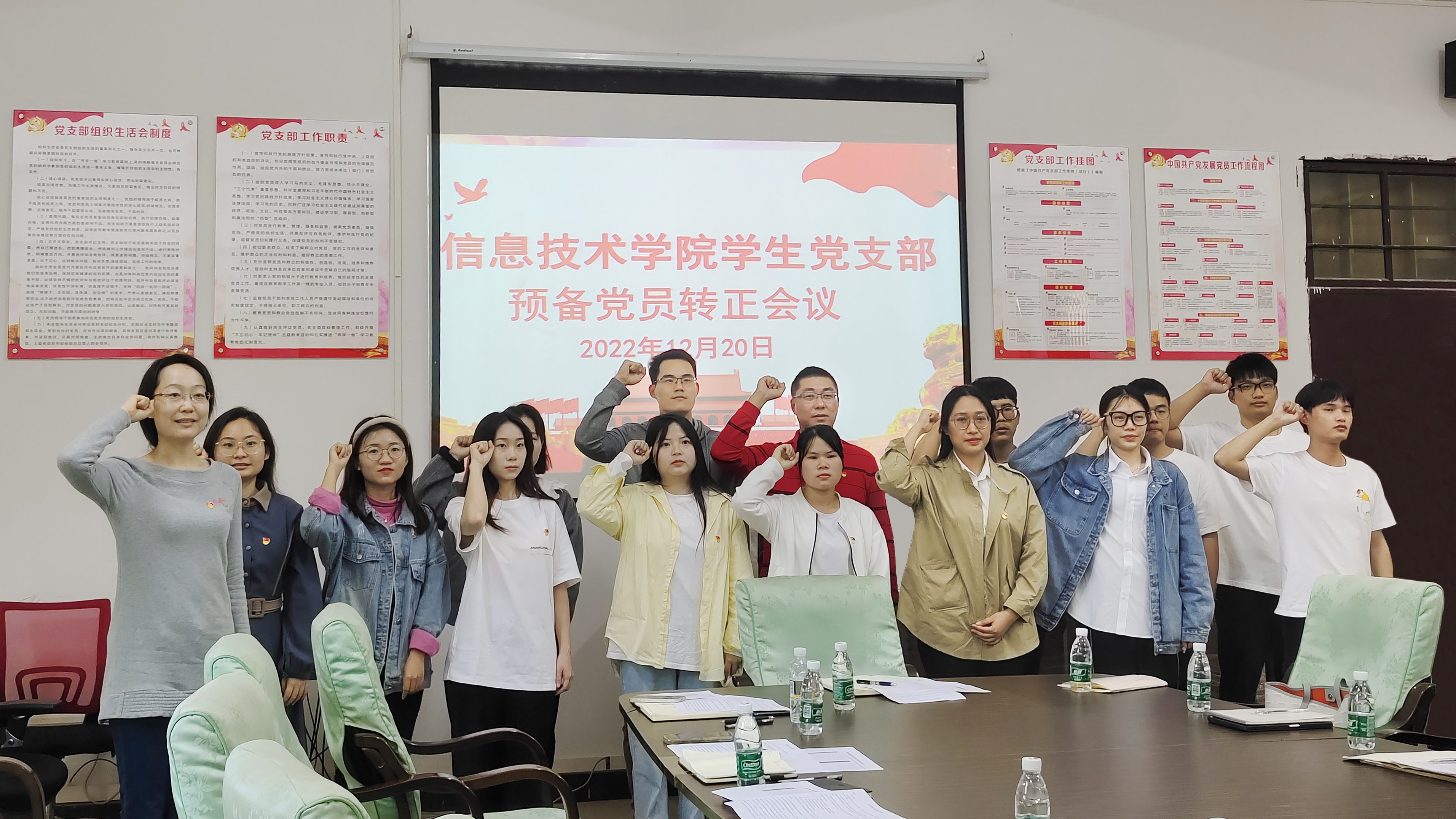 (青年媒体中心 黄正宁讯)2022年12月20日,太阳集团tyc4633员工党支部在4-213室召开预备党员转正大会。太阳集团tyc4633党总支副书记黄守官,员工党支部宣传兼纪检委员唐图、组织兼青年委员蔡守正同志、辅导员王智娴及吴淑亲等同志出席转正大会。本次会议由员工党支部书记代晓明主持。