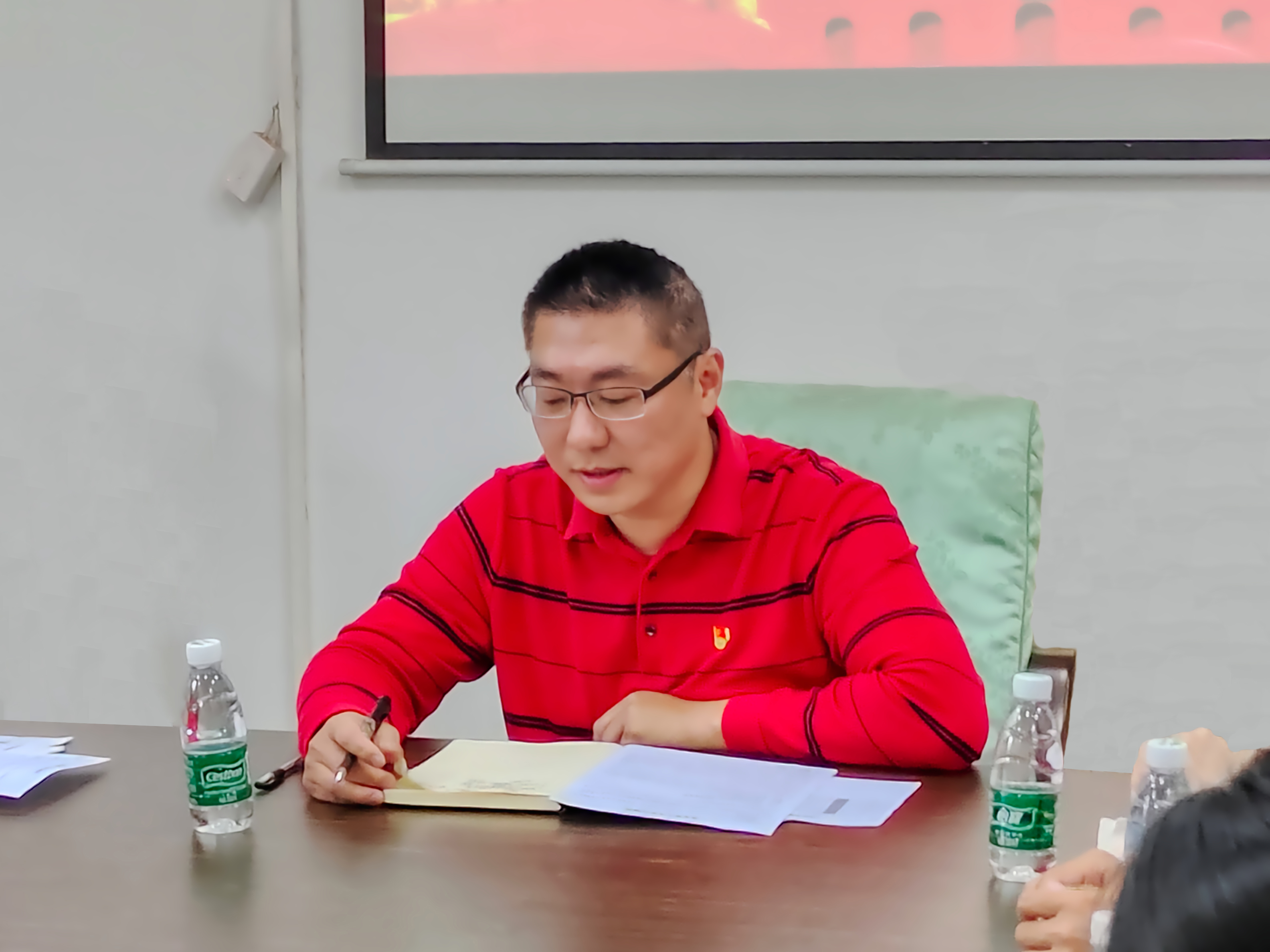 大会第七项:党总支副书记黄守官同志发表讲话。希望转正党员们能够严格要求自己,在未来的生活中积极履行党员的先锋模范作用。在社会中扮演好自己的角色,更好的服务国家发展,为社会进步贡献自己的力量,坚持思想上跟党走,不忘初心,砥砺前行。