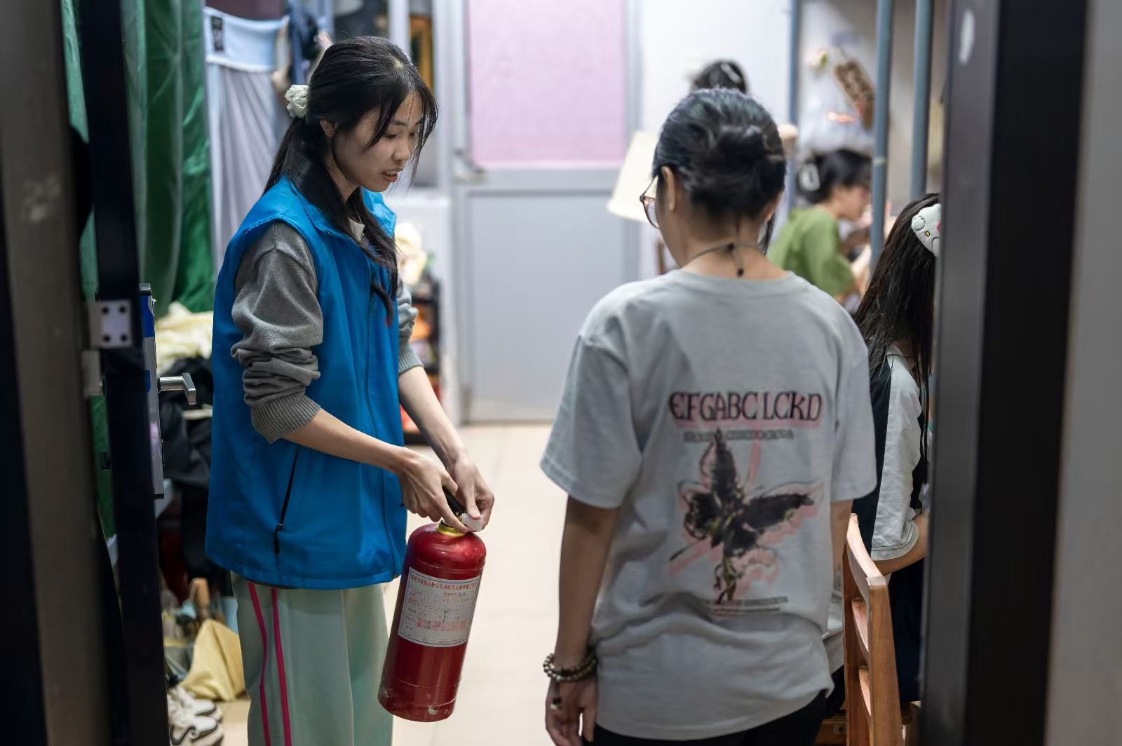 在活动中,志愿者们分工明确,协作默契。一部分志愿者负责演示灭火器的正确使用方法,通过现场操作,让同学们直观了解如何在火灾初期迅速有效地扑灭火源。另一部分志愿者则负责普及消防安全基础知识,详细讲解宿舍用电安全注意事项,提醒同学们要时刻注意用电安全,避免火灾事故的发生。