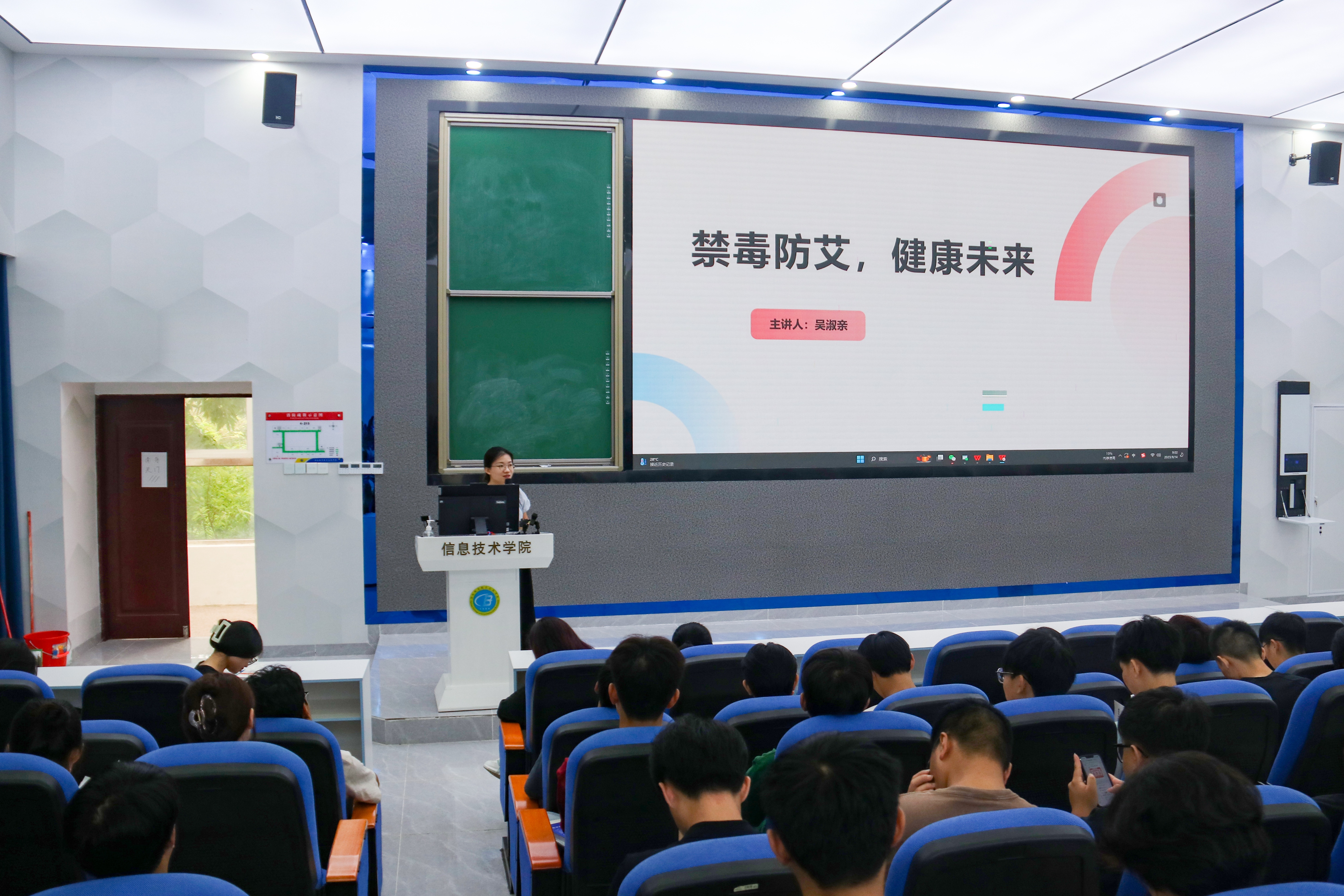 最后,由吴淑亲老师为大家科普禁毒防艾知识。吴老师以一段简短的视频展开讲解,令同学们清楚认识到毒品为自身、家庭带来的巨大的伤害,具体介绍了传统毒品与新型毒品的样式。随后,吴老师进一步宣传科普预防艾滋病知识,让同学们对艾滋病防治相关知识有了进一步的了解,明白了防艾的重要性。