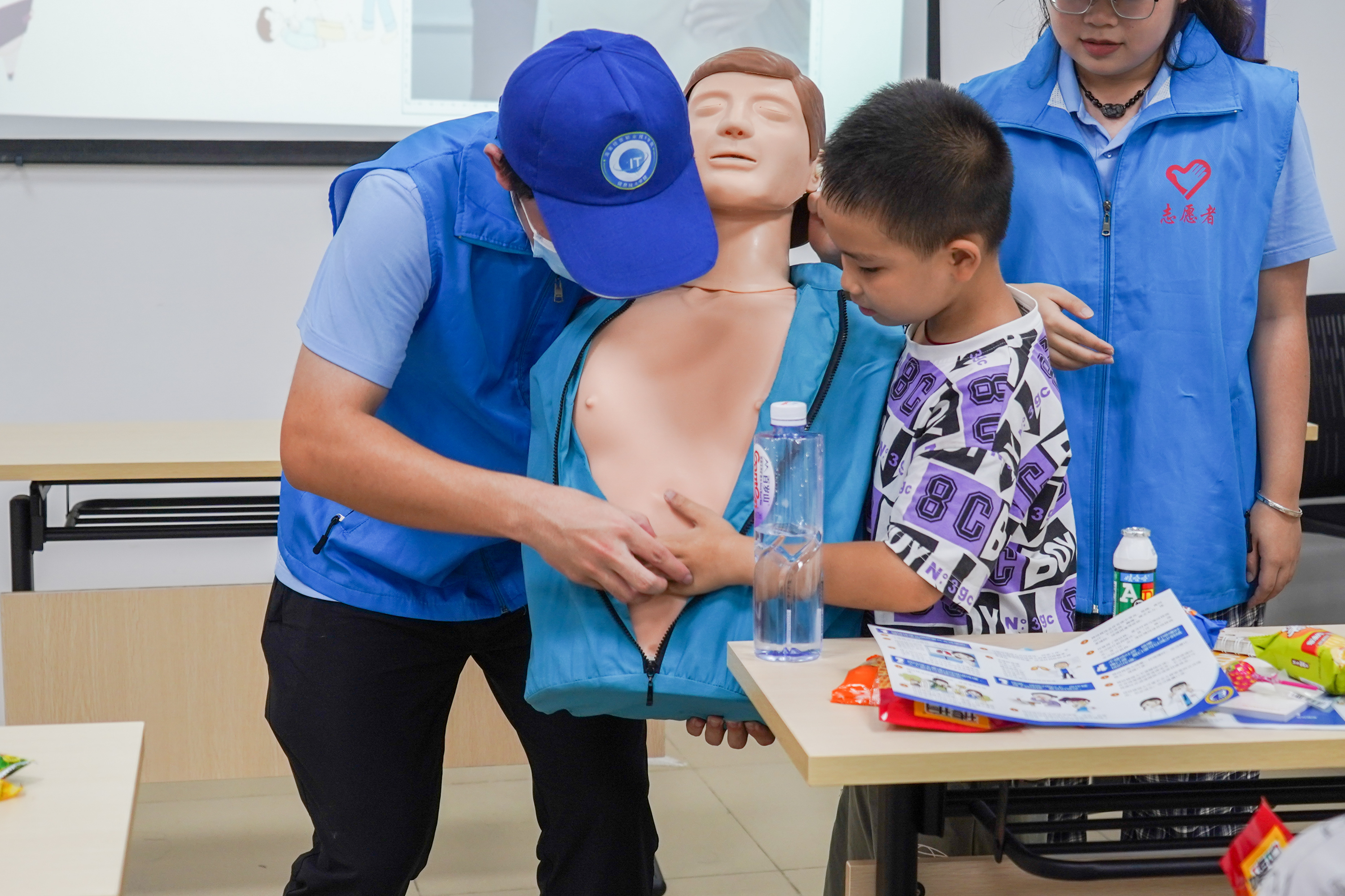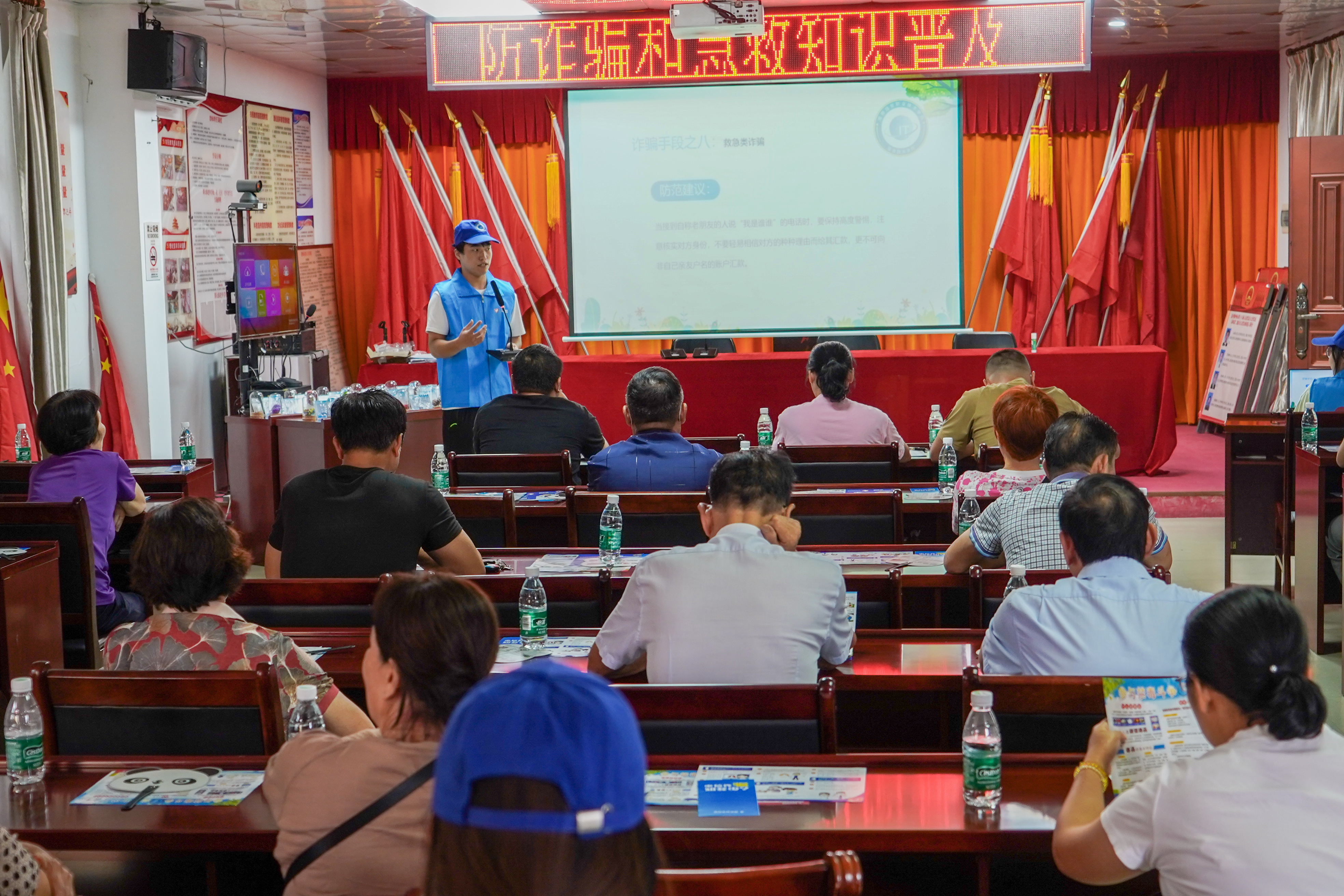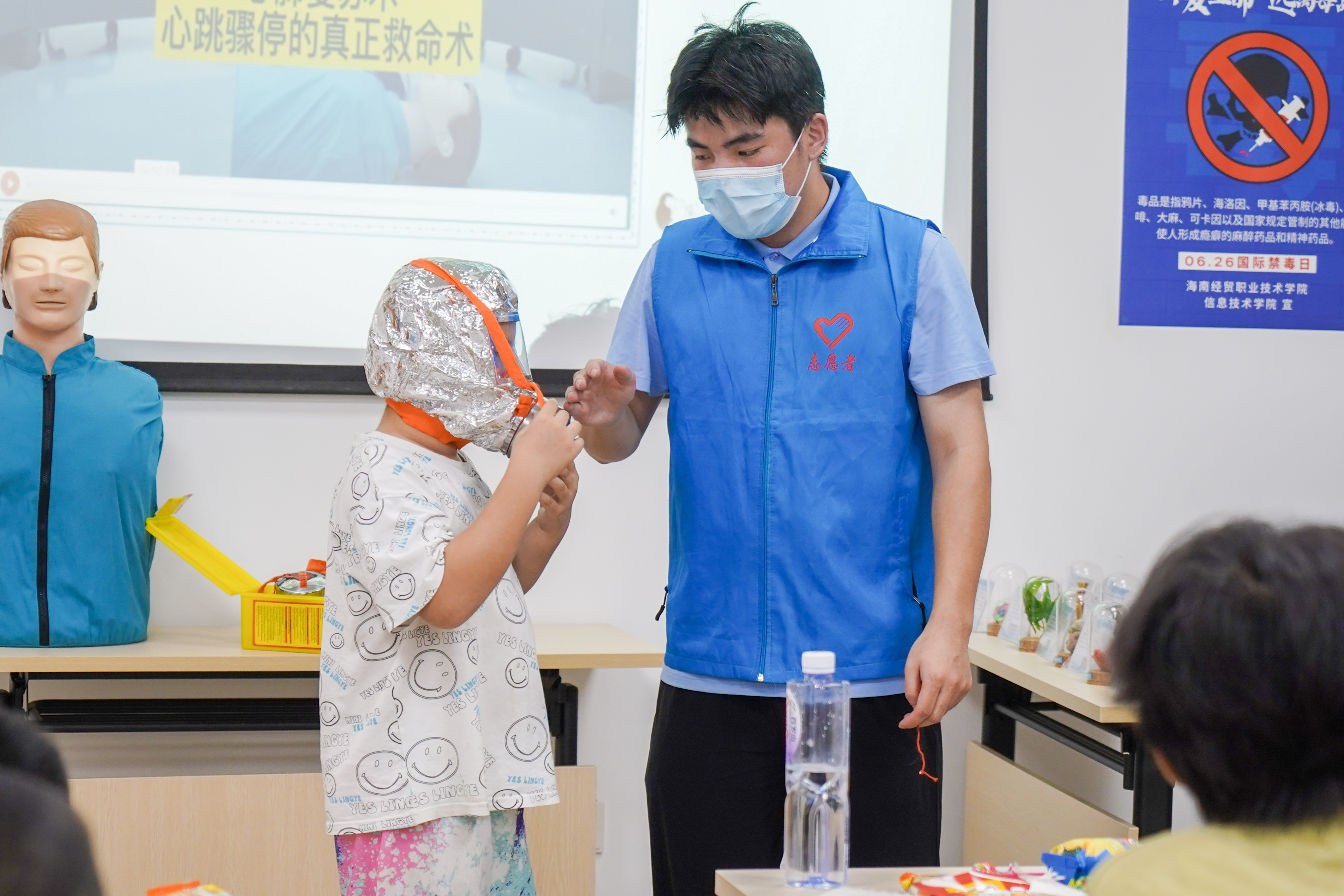 宣讲活动开始后团队成员从“未年人保护法保护什么”、“如何预防校园欺凌”、“防溺水六不准”、“预防火灾及防毒面具、灭火器材如何使用”“交通安全常识讲授”、“急救知识普及与现场教学”、“禁毒科普课堂”、七个方面开展未成年人保护宣讲和中老年人“防诈骗和急救知识普及宣讲。通过案例视频播放、知识科普、发放活动宣传扇和宣传、现场活动竞答、实景示范操作,道具演绎等理论与实践相结合的方法,让孩子们入脑入心。