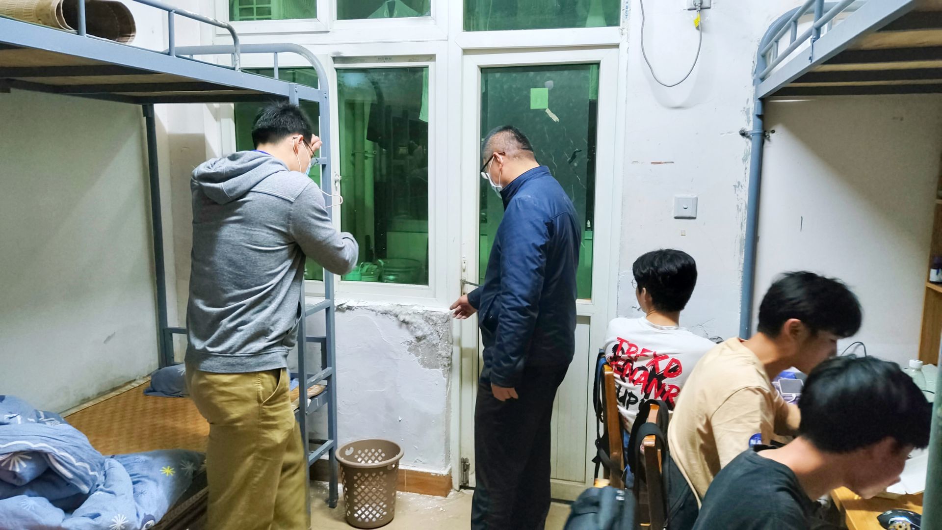 新学期伊始,为排查公司宿舍的安全隐患,及时了解员工的思想动态、健康情况、生活需求及宿舍卫生状况。2023年2月20日晚上七点,公司开展新学期宿舍检查活动。在太阳集团tyc4633党总支副书记黄守官的带领下,学工办负责人唐图,全体辅导员以及团学干部们对各个宿舍进行了走访。