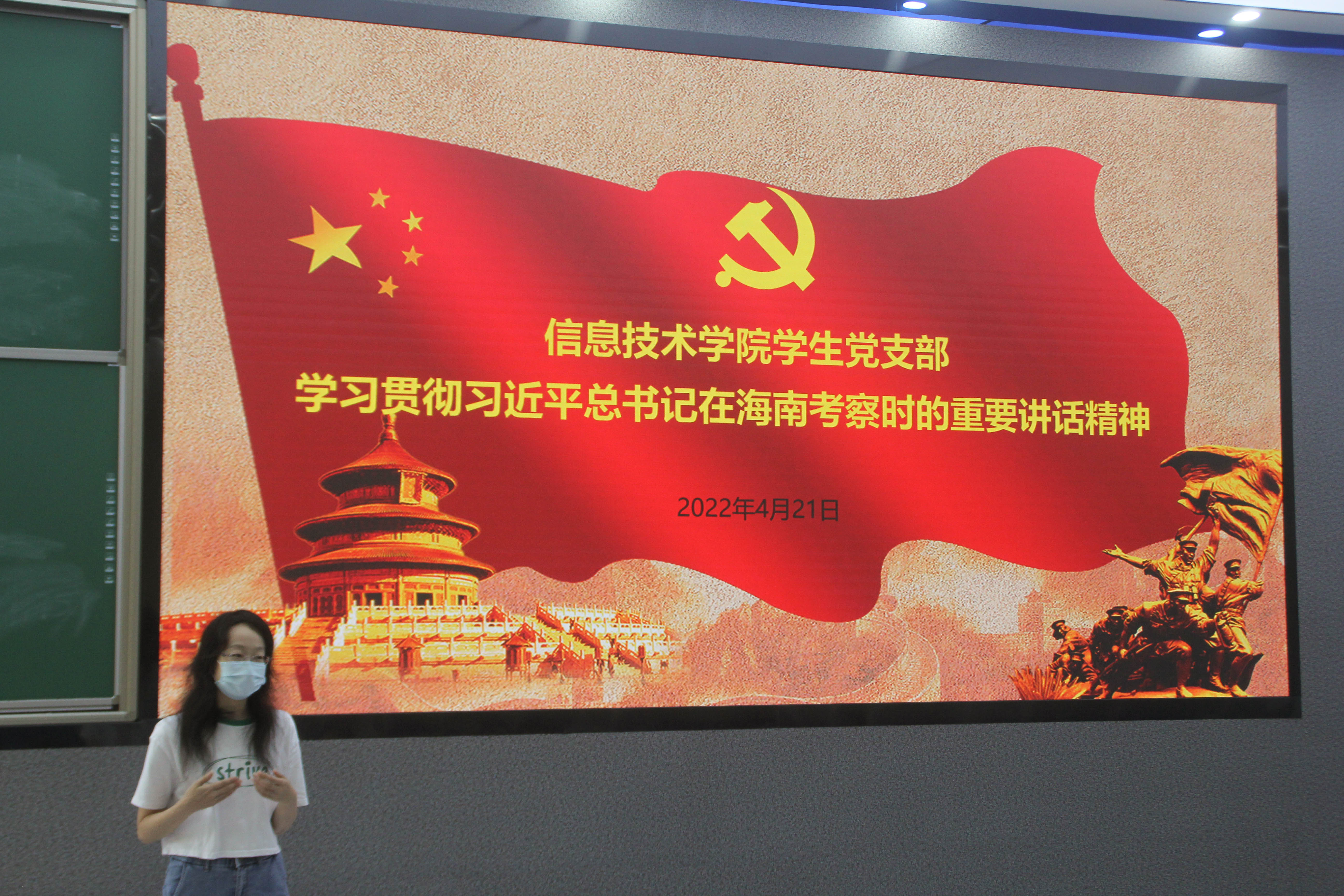 4月21日上午,太阳集团tyc4633员工党支部书记代晓明主持召开交流会,传达学习习近平总书记在考察海南时的重要讲话精神。学工办主任梁其钰、全体辅导员及入党积极分子参加会议。