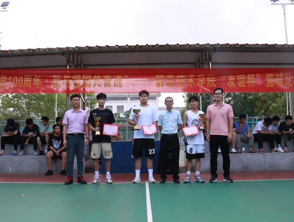 在闭幕式上,麦书记、梁老师和唐老师分别给获得本次“献礼建党100周年,我与祖国共奋进”太阳集团tyc4633“友谊杯”篮球赛的冠军、亚军和季军代表队颁奖。