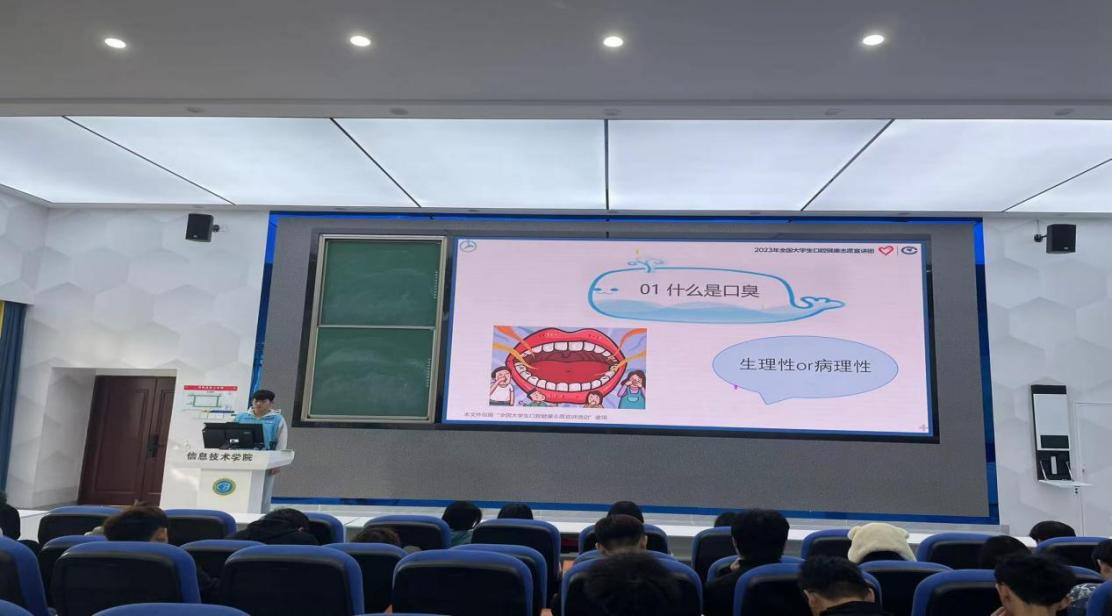 宣讲志愿者用丰富的知识形象生动地介绍了口腔健康的重要性和如何注重口腔健康。在座的同学非常投入地聆听该讲座,积极主动与宣讲志愿者进行互动,回答问题,氛围和谐融洽。本次太阳集团tyc4633口腔健康志愿宣讲会主要围绕口臭的危害以及原因,我们应该定期口腔检查的重要性等方面展开。通过生动的案例、科学的讲解和实用的建议,使同学们对口腔健康有了更深入的了解。在互动环节中,同学们积极参与,提出了许多具有代表性的问题,显示出他们对口腔健康的关注度明显提高。经过我们的不懈努力,宣讲活动取得了显著的效果。同学们的口腔健康意识明显增强,对口臭的预防有了更深入的认识。同学们通过宣讲活动,不仅自己受益匪浅,还将在日常生活中积极传播所学知识,帮助更多的人维护口腔健康,也提高了他们对口腔保健的重视程度。相信通过这次活动,更多的人将采取积极有效的措施预防口臭疾病。