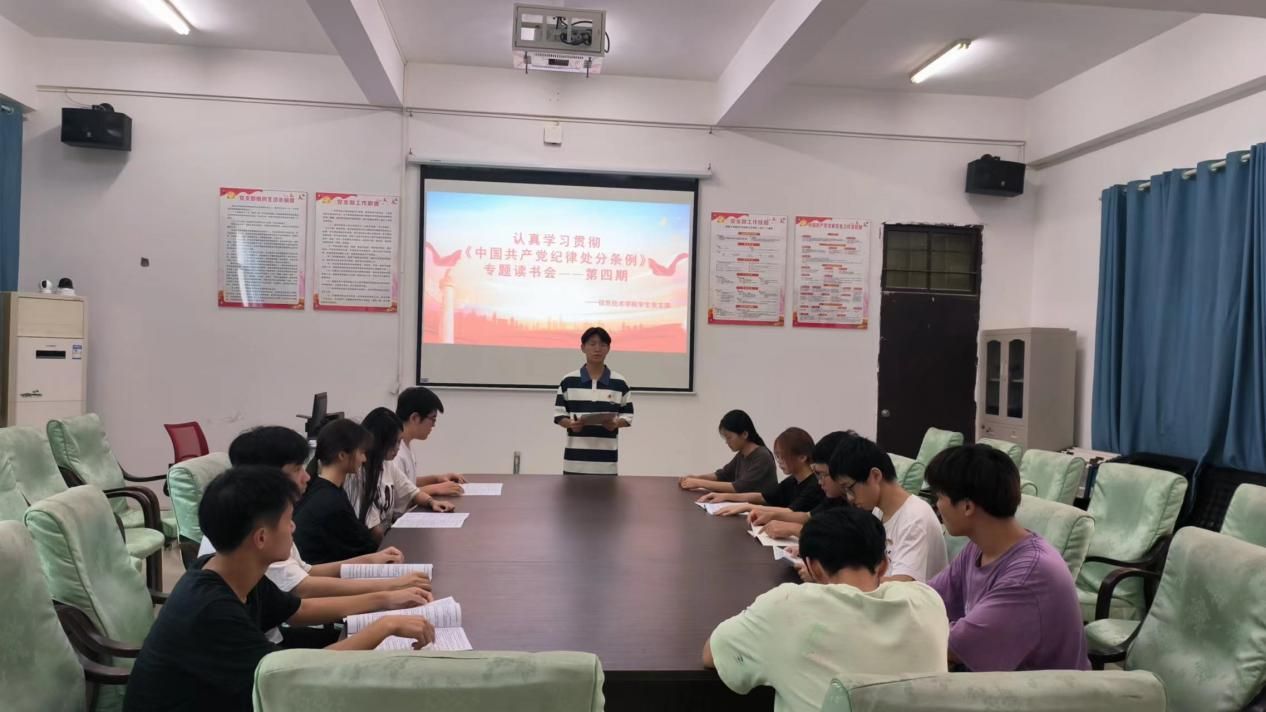 为深入学习贯彻新修订的《中国共产党纪律处分条例》,深刻认识掌握条例的重要性,进一步加强入党申请人及入党积极分子的自觉意识与守法意识,太阳集团tyc4633员工党支部于5月7日在4-213开展“认真学习贯彻《中国共产党纪律处分条例》专题读书班——第四期”,参与本次培训的人员有23级网络1班、23级网络2班以及23级网络3班全体入党申请人与入党积极分子。