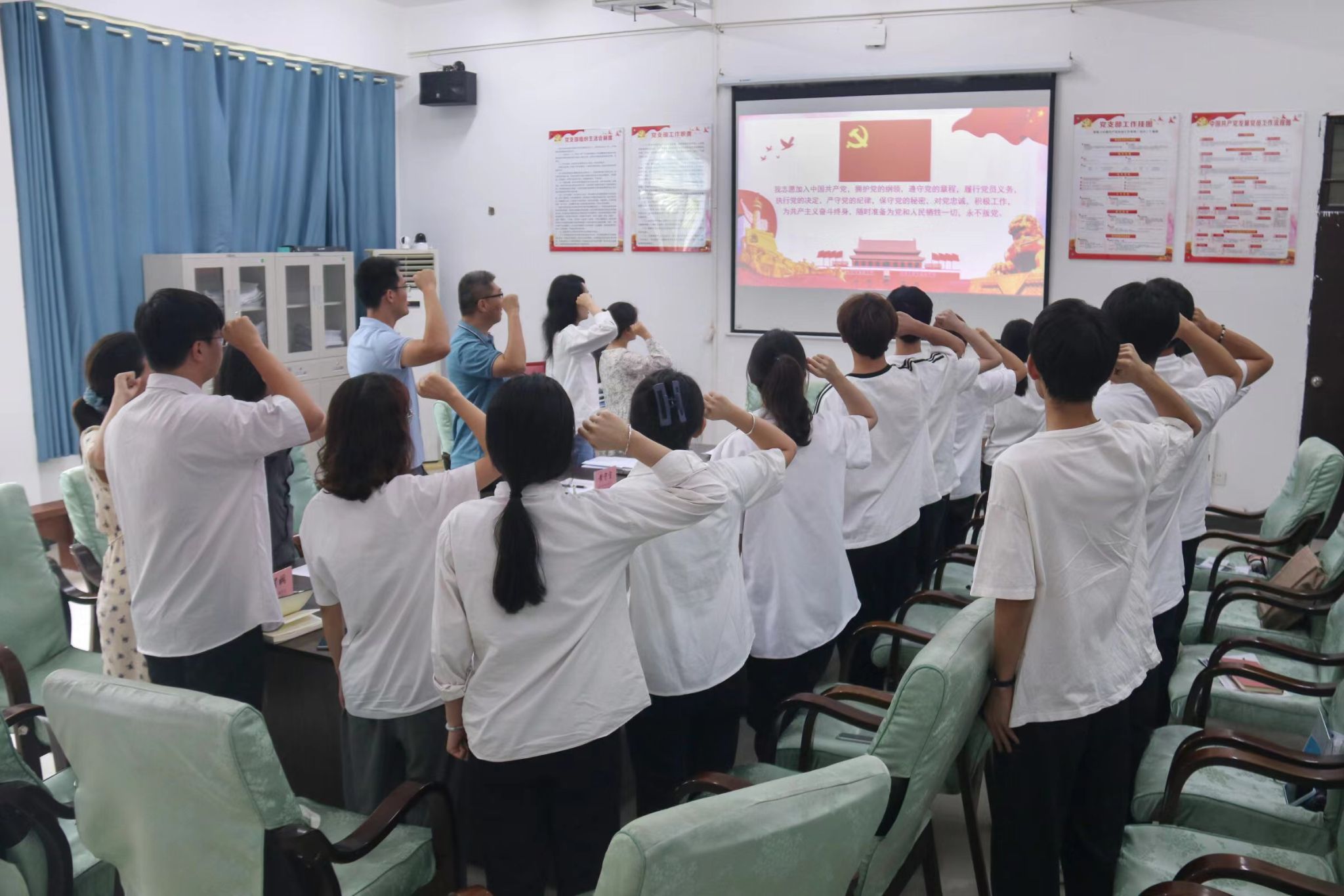 为进一步注入新血液,凝聚新力量,增强党的影响力和向心力,太阳集团tyc4633员工党支部于6月26日在4-213召开吸收预备党员会议。本次会议由员工党支部书记代晓明同志主持,太阳集团tyc4633党总支副书记黄守官同志、员工党支部宣传兼纪检委员唐图老师、员工党支部组织兼青年委员蔡守正老师,辅导员王智娴、吴淑亲老师共同参加此次会议。