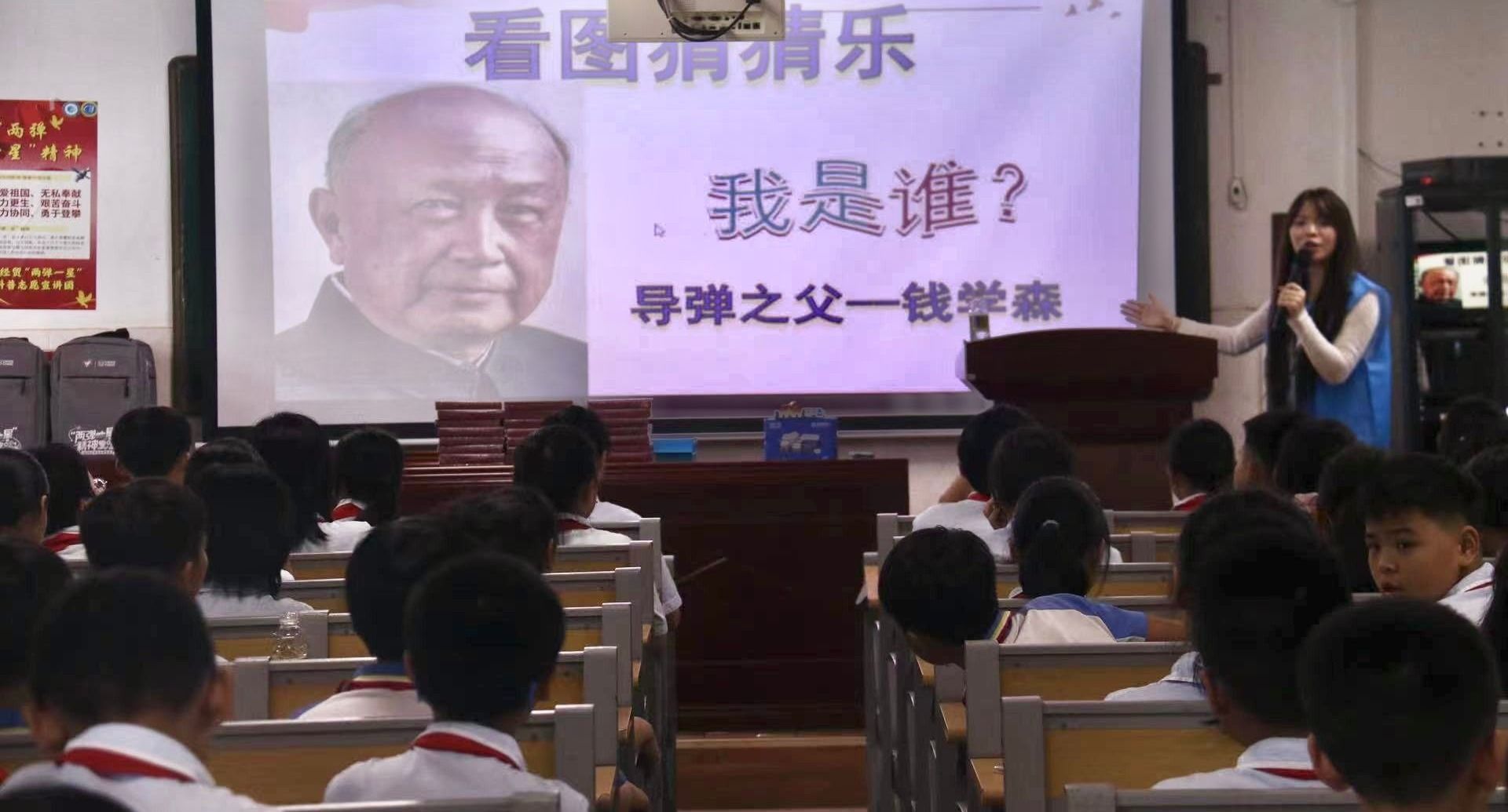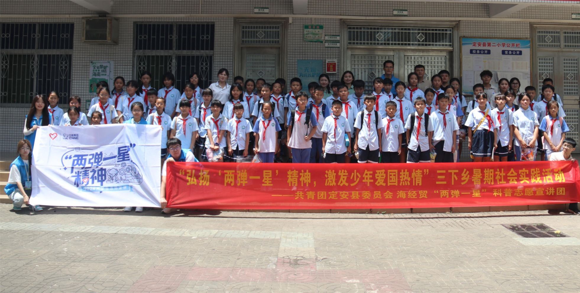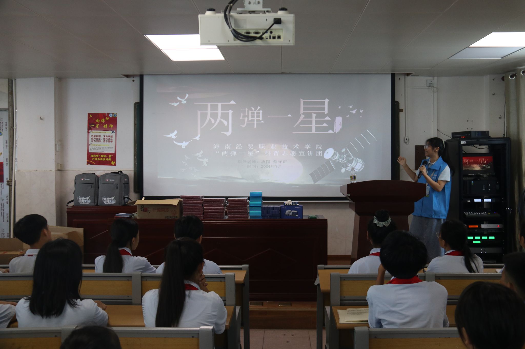 为进一步增强青少年的国防观念、科技意识和历史认知, 2024年7月7日-7月8日,太阳集团tyc4633“两弹一星”科普志愿宣讲团联合定安团委深入到定安县第二小学、定安县第三小学开展了“弘扬‘两弹一星’精神,激发少年爱国热情”暑期“三下乡”社会实践活动。
