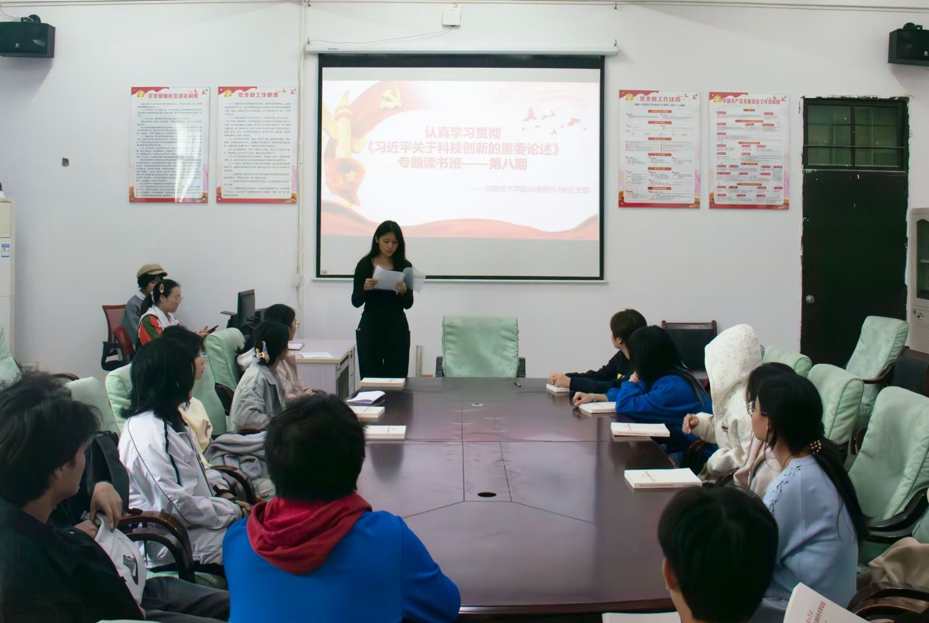 活动伊始,王紫芯组织同学们自行阅读关于科技创新的相关重要论述,同学们认真阅读并深入领会科技创新在新时代背景下的重要意义。随后,王紫芯进行了发言,她着重强调了创新发展在新时代的重要性,指出其是解决发展动力问题的关键所在。