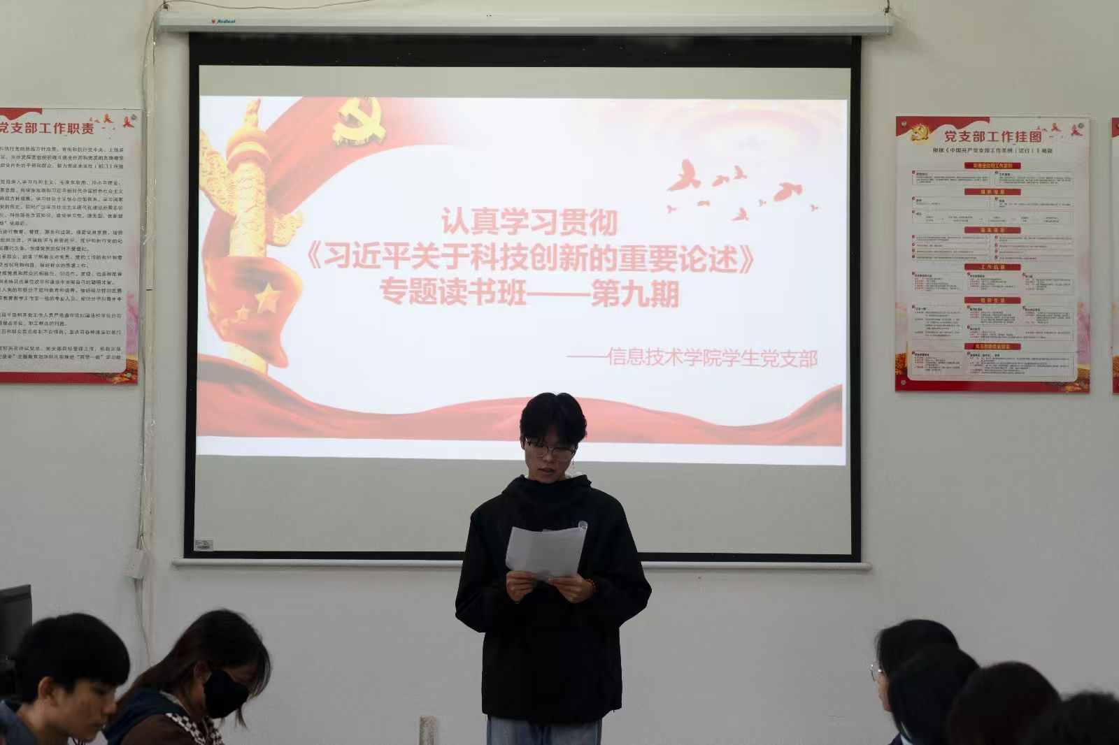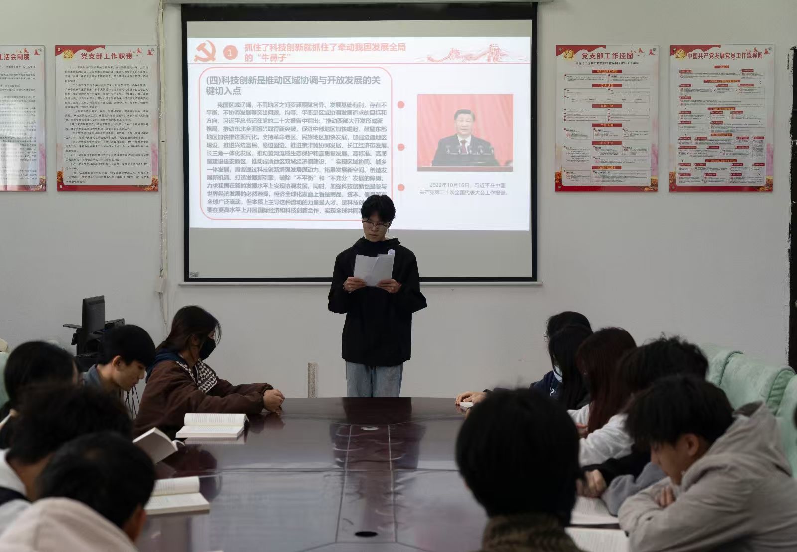 活动伊始,张文博同学引用了习近平总书记的重要论述,强调了把创新作为引领发展的第一动力,在当前竞争日益激烈的时代背景下具有重要的地位。随后,他带领同学们深入研读了《习近平关于科技创新的重要论述》,详细讲解了其中的核心要点与科技创新标准。