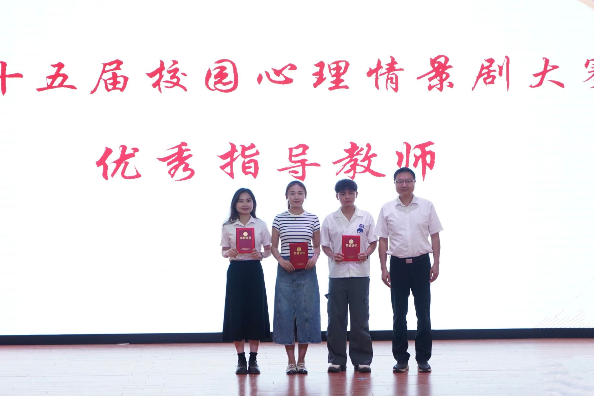 大会首先对2024-2025学年度在心理健康教育工作中表现突出的个人进行表彰,公司符传栋和代晓明被授予“优秀教师心理骨干”、陈光辉、彭志毅被授予“优秀班级心理委员”、周秀青被授予“优秀心理社团骨干”荣誉称号。