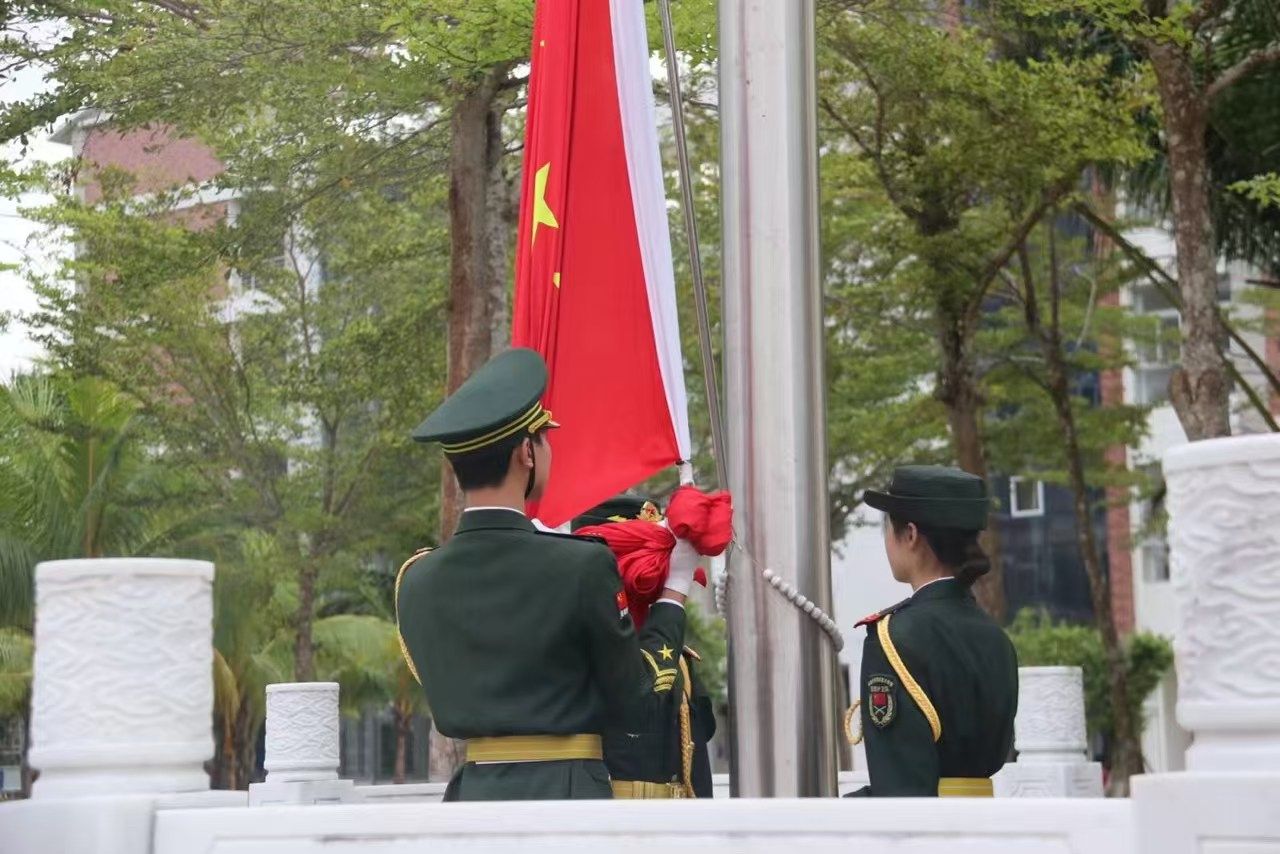 仪式伊始,全场师生肃立,雄壮国歌声中,五星红旗缓缓升起、迎风飘扬,全体人员向国旗行注目礼,以赤诚之心表达对祖国的崇高敬意与无限热爱。