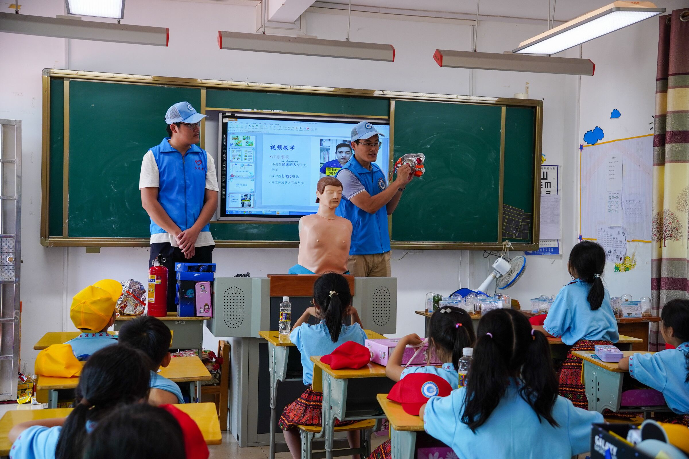 在宣讲过程中小朋友们,聚精会神,认真聆听,纯真的眼神里透出对未知知识的渴望。小老师们提问时,她们争先恐后的举手回答问题,分享自己的答案、看法、经历和见解,为了更好更专业开展好此次未成年人保护志愿服务活动,我们邀请到了在公司讲授安全教育课的唐图老师进行现场教学,通过假体模型现场演示“海姆立克法”的操作步骤。孩子们的求知欲,探索欲随着宣讲活动不断推进愈发强烈。
