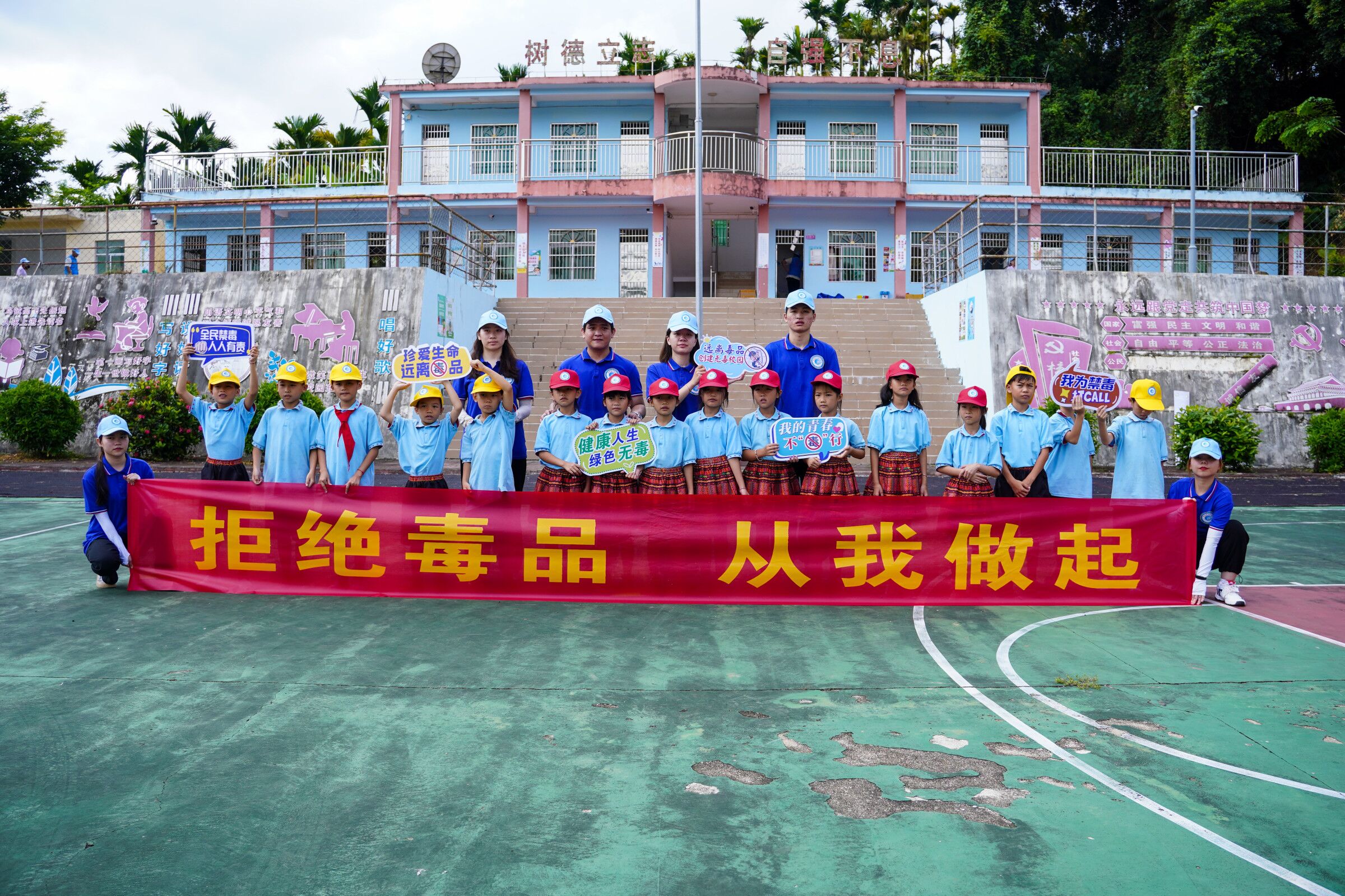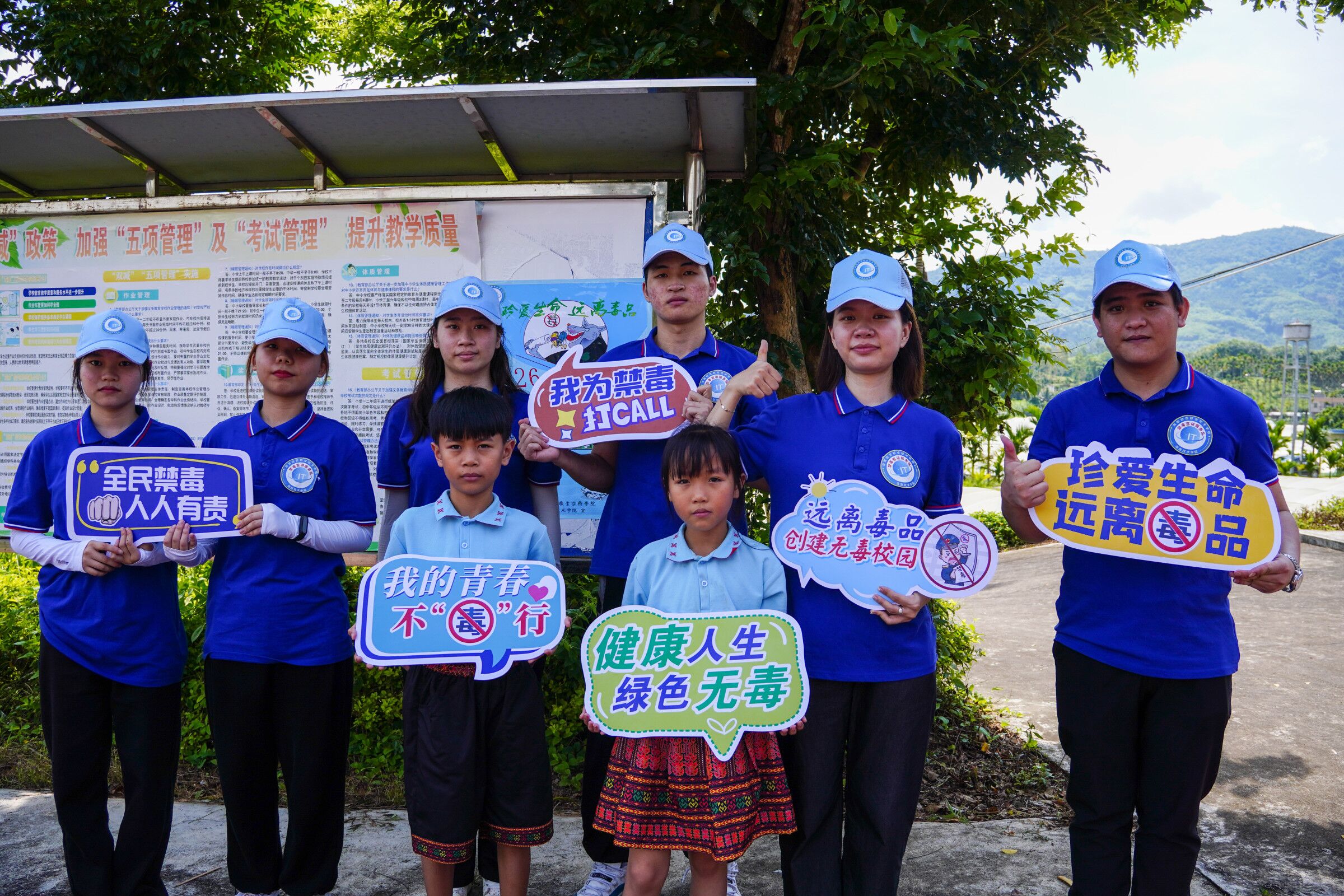 珍爱生命,远离毒品。为了进一步加强校园禁毒宣传,提高同学们的禁毒意识,创建无毒校园,营造良好的校园环境,2022年6月30日,太阳集团tyc4633禁毒宣讲服务队在辅导员王智娴、唐图的带领下,前往五指山南圣中心公司南圣教学点开展禁毒宣传教育活动。