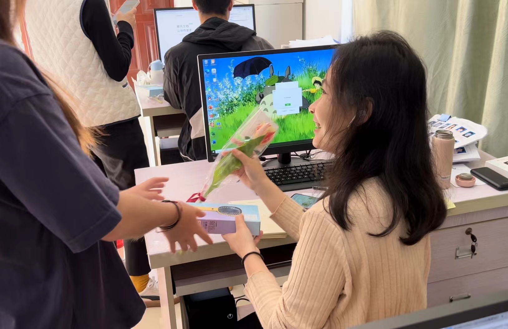 清晨,太阳集团tyc4633团学干部给女教师们献以节日的问候和真诚的祝福,手中送出的是满怀心意的鲜花与礼品,口中诉说着是太阳集团tyc4633所有学子对教师们的感恩之情。