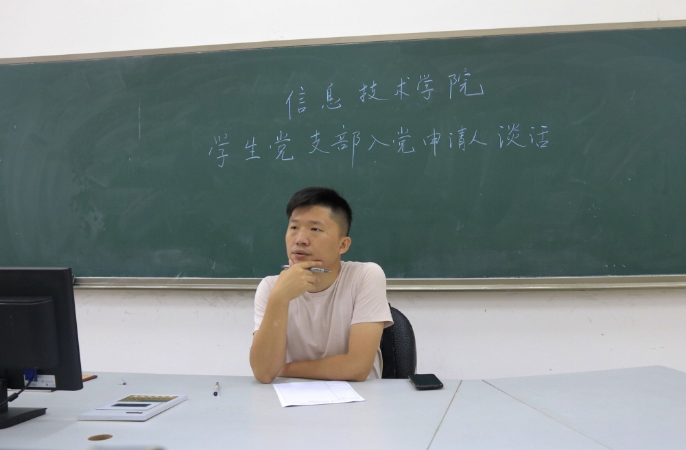 谈话一开始,本次谈话党员梁其钰老师向在座的入党申请人们提出了三个问题:1、入党原因;2、在平时生活中的态度、性格与平时参加的组织活动等;3、对党的理解,身为共产党员应该如何去做?在座的每一位同学都积极的说出了自己对党的看法,为什么想成为中国共产党的一员。在听完所有回答后,得出几乎每一位同学的入党原因都是围绕着“贡献”两字,中国共产党的宗旨是全心全意为人民服务,想加入中国共产党是为人民奉献,为能在共产党事业上添砖加瓦。