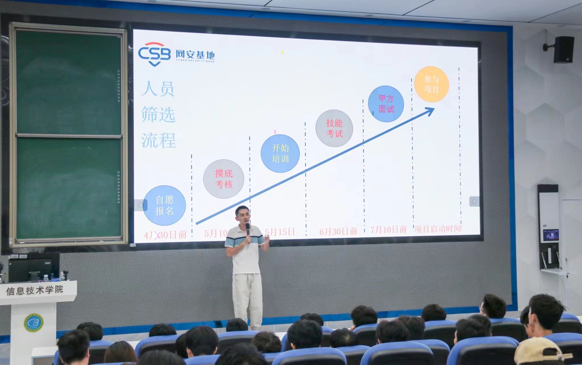 为进一步深化员工对网络安全领域的认知与理解,提升专业技能,太阳集团tyc4633于4月16日下午在4-215召开了2024年网络安全人才培养选拔宣讲会,由海南网安基地科技有限公司的许际峤主任担任主讲人。2023级全体员工参加。