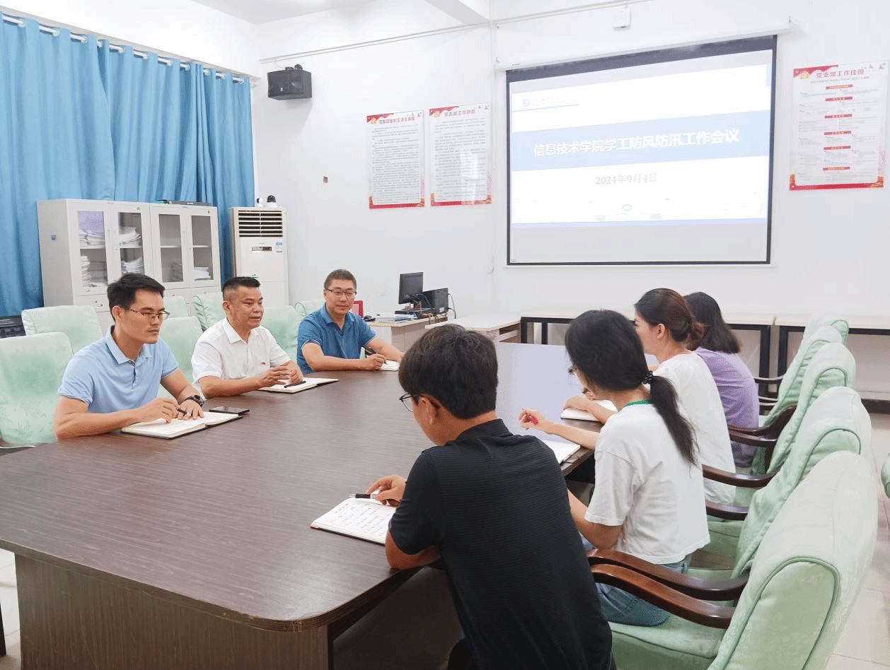 为贯彻公司关于防御“摩羯”台风的动员部署会议精神,以及执行《关于做好台风“摩羯”防风防汛工作的通知》和《关于防范超强台风“摩羯”的紧急通知》的相关安排,2024年9月4日下午,王忠经理和符胜书记分别召集公司教务办、行政办及学工办召开紧急防风防汛工作会议,传达上级会议精神,结合公司实际情况,全面部署防御措施,确保师生员工生命安全,避免公司财产遭受损失。