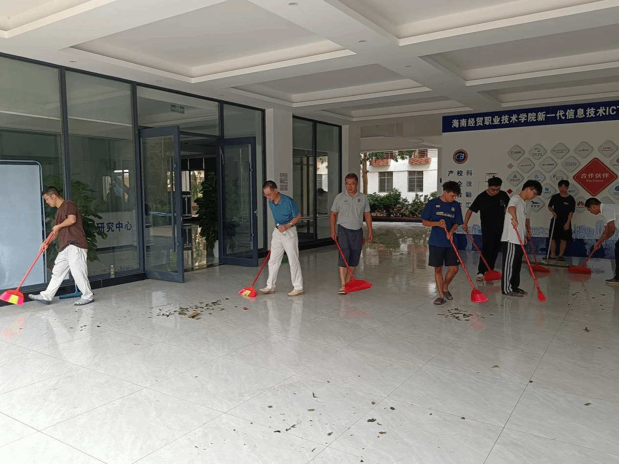 在灾后重建的艰巨任务中,大家分工明确,协同作战,手持工具,顶着烈日,对第四教学楼和经贸南路进行了全面细致的清理。从道路上的断枝残叶到垃圾杂物,每一个细节都不放过,确保了校园环境的整洁与安全。同时,公司组织人员对机房、厕所等重要区域进行了全面检查和维修,清理排水系统,检查墙体结构,及时消除安全隐患,为恢复正常的教学秩序奠定了坚实基础,确保师生能够在一个安全、有序的环境中继续学习和工作。此外,辅导员们更是深入宿舍,逐层逐间检查员工安全情况,排查灾后隐患,确保每位员工的生活与学习得到妥善安排。