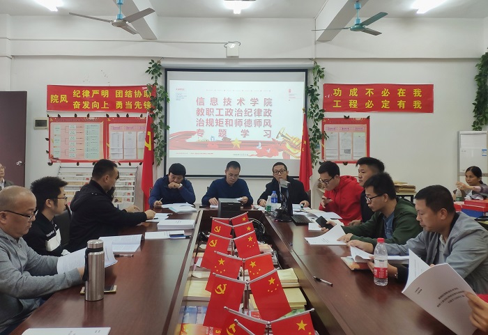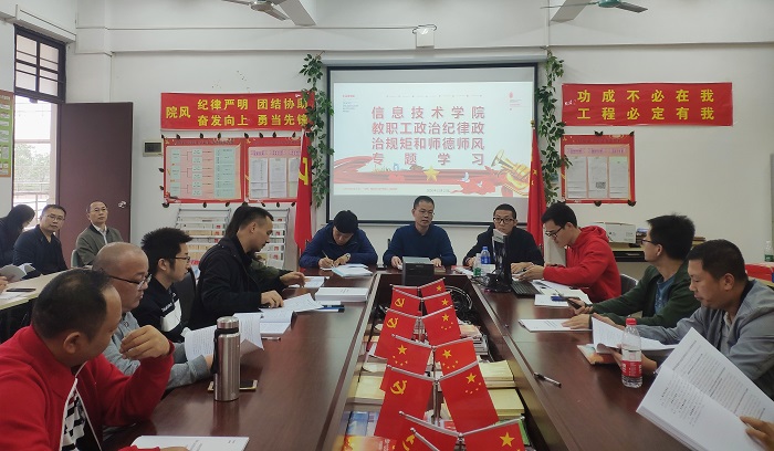 会上,麦锐副书记传达了《教育部关于高校教师师德失范行为处理的指导意见》以及教育厅和公司党委关于加强高校教师师德师风建设等相关文件精神,并带领大家学习了《关于加强和改进新时代师德师风建设的意见》、《新时代高校教师职业行为十项准则》,同时分析了《教育部通报8起违法教师职业行为十项准则典型问题》等内容。