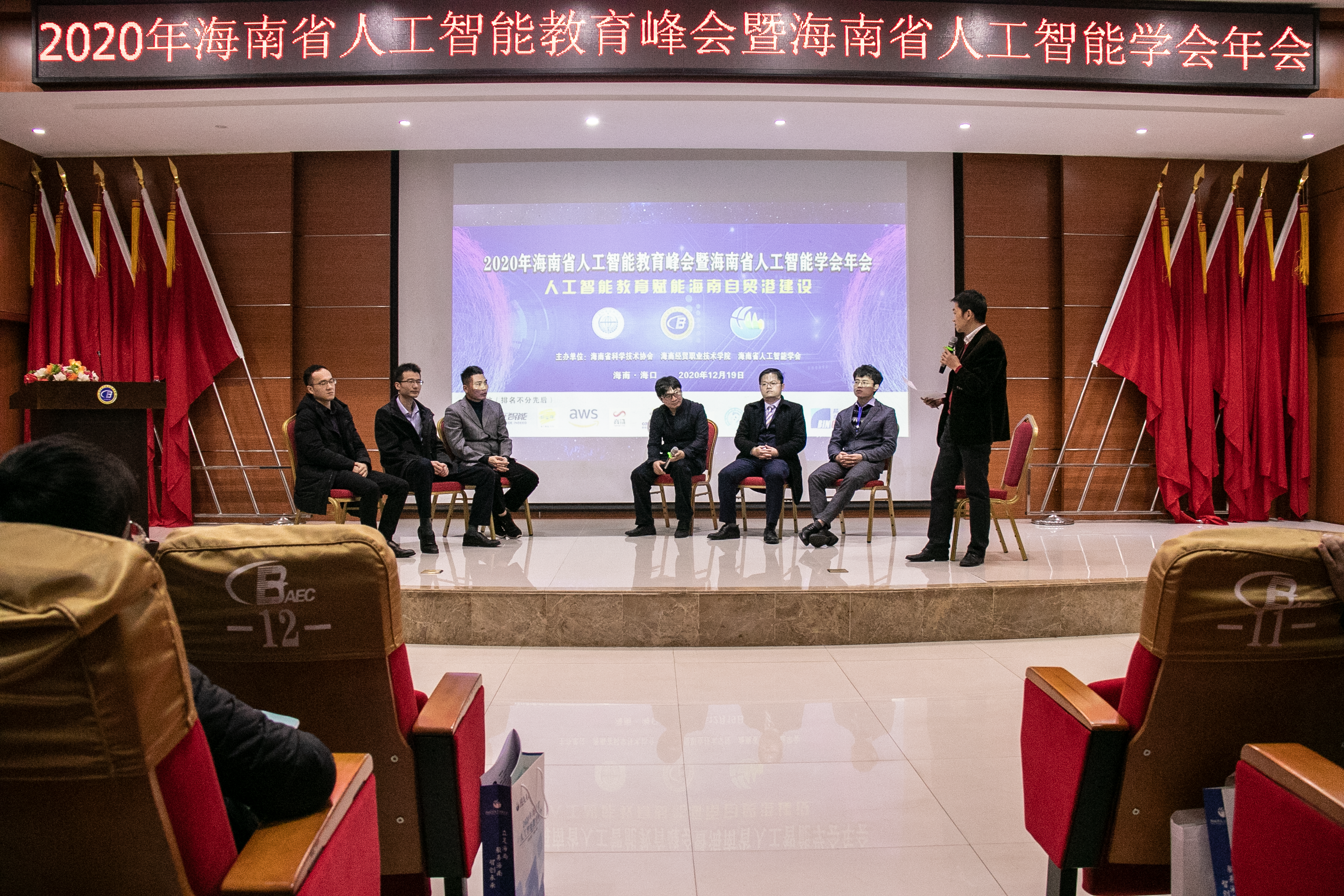 2020年12月19日(青年媒体中心 黎扬振报道)讯。为响应国务院《国务院关于印发新一代人工智能发展规划的通知》、教育部《高等公司人工智能创新行动计划》和《2019年教育信息化和网络安全工作要点》中“推动在中小学阶段设置人工智能相关课程”,以及深入贯彻教育部/海南省人民政府《关于支持海南深化教育改革开放实施方案》,2020年海南省人工智能教育峰会暨海南省人工智能学会年会于2020年12月19日上午在公司举办。本次峰会主题是人工智能教育赋能海南自贸港建设,海南省科学技术协会副主席林明才、海南大学信息科学技术公司副经理陈明锐等省内外将近200名专家及企业精英,太阳集团tyc4633经理黄景贵、副经理李莉、太阳集团tyc4633经理王忠参加了本次峰会,海经贸将近300名学子到场听讲。