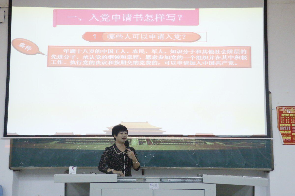 2020年11月15日(青年媒体中心陈佳慧 报道)讯,太阳集团tyc4633入党申请书撰写讲座在第二教学楼2-102开展,此次讲座由黄慧娟老师以加入党的工作流程为主题,激励同学们积极写入党申请书,全面理解入党的流程。