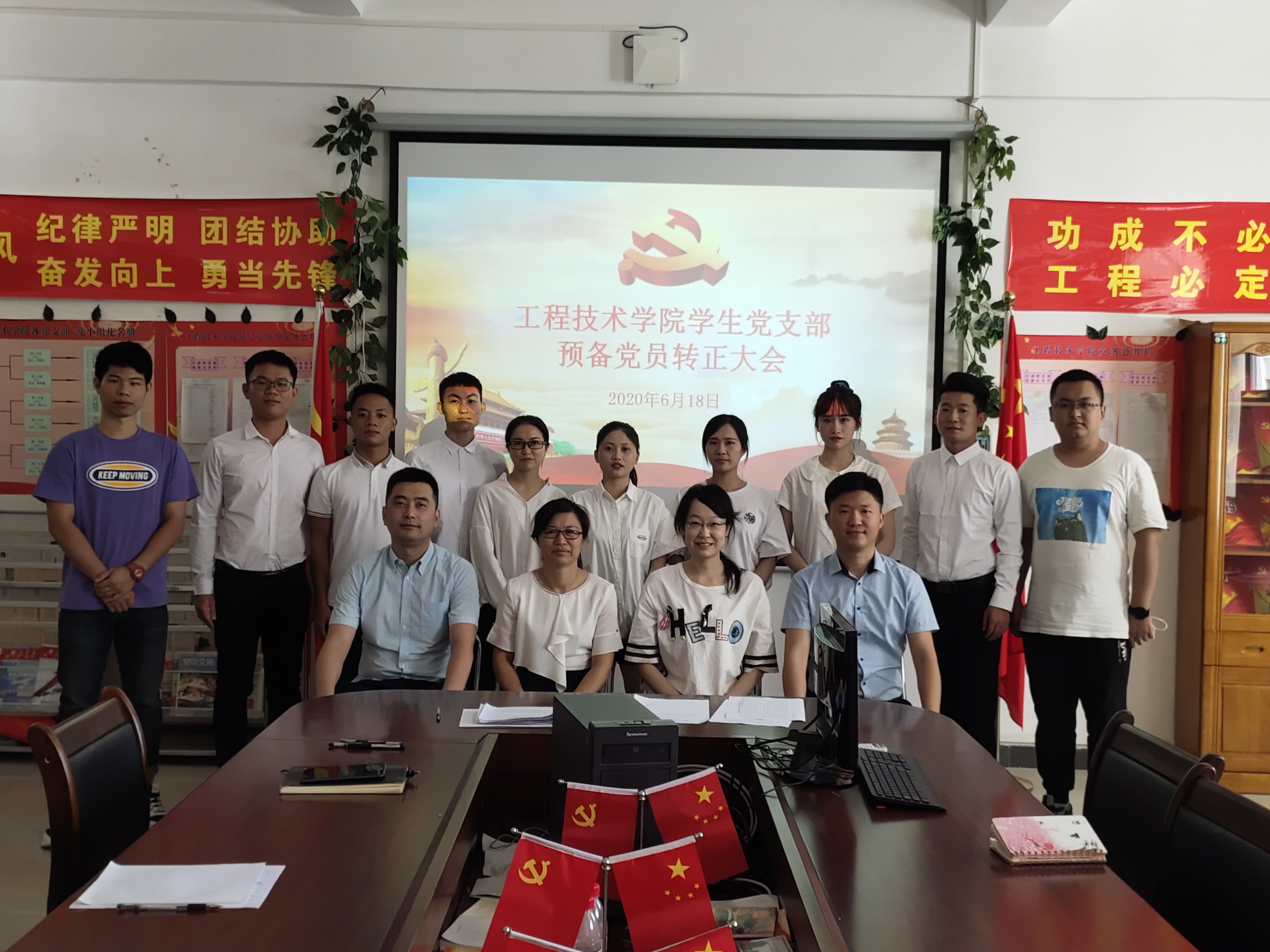 2020年6月18日(院青年媒体中心 符方蕾报道)讯,工程技术公司员工党支部预备党员转正大会于上午10:00在2-406党员之家成功举行,公司党总支副书记陈亚芳老师、学工办主任梁其钰老师、员工党支部书记代晓明老师、团学负责人周恺老师4位正式党员出席本次会议,大会由公司员工党支部书记代晓明老师主持。