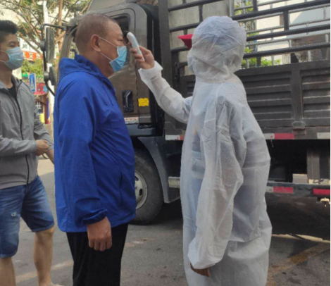 公司学子陈达皇,面对当前严峻的疫情防控形势,他第一时间赶到三亚市崖州区市场一线做一名防控疫情志愿者,参与到疫情防控工作中,协助市场管理人员测量体温,检查进出人员佩戴口罩情况,劝导买菜人员尽量一个人出来买菜、减少外出,不要随意走动,引导大家支持和参与疫情防控工作。