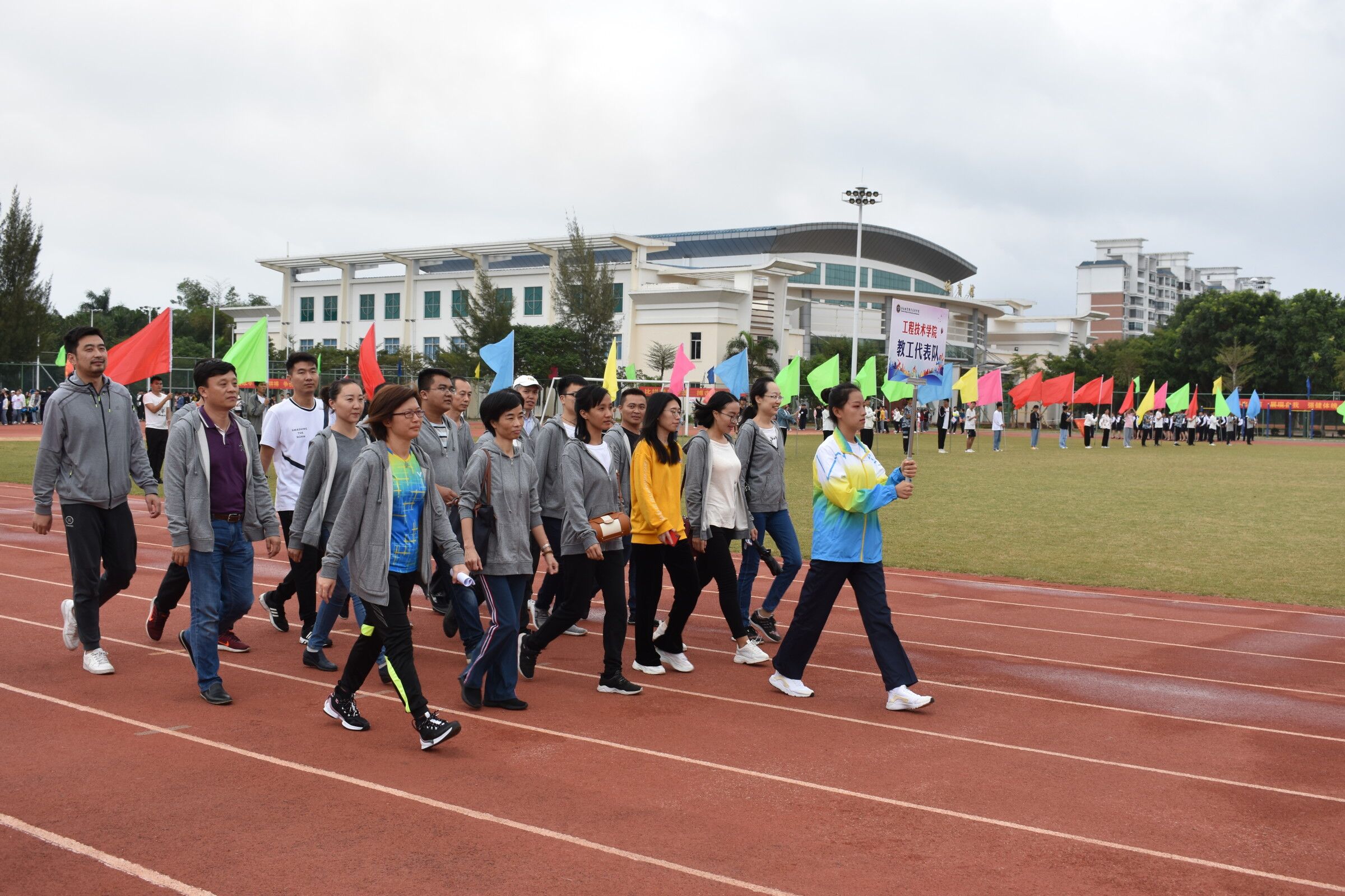 2019年11月26日(院青年媒体中心 陈光龙报道)讯,11月26日15:00分,公司第八届校运会位于田径场进行校运会彩排仪式。