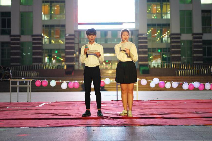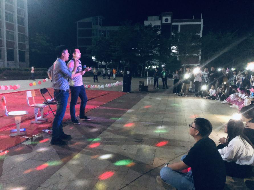 周末舞会在经贸广场上划分为六大区域,分别为唱歌区,跳舞区,素质拓展区,爱要大声说出来区、餐饮区和奖品区。整场互动游戏为主场,中间穿插两院工作人员精心准备的歌曲和舞蹈,主持人妙语连珠、节目表演美轮美奂、游戏环节互动充分,两院同学在阵阵欢声笑语中打成一片。公司学工办主任梁其钰老师,团学负责人唐图老师和17级辅导员周恺老师也参与了我们这次的活动。
