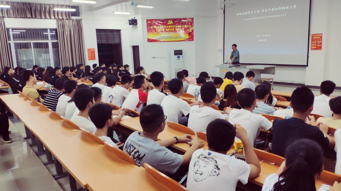 12月06日讯(青年媒体中心报道 纪新妹),为了增强员工干部的综合素质和能力,公司于12月05日星期三晚上7点整,在2教408教室举行第一期工程技术公司员工干部示范培训班开班仪式。会议由周恺老师主持,有陈继敏,陈亚芳,梁其钰,唐图,郭容佳,代晓明,周书妍等老师参加会议:参会人员为公司17、18级各班班委以及第四届团学青所有成员。