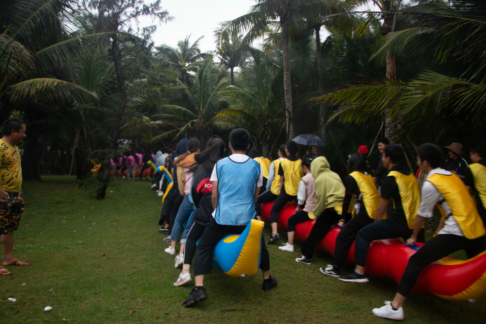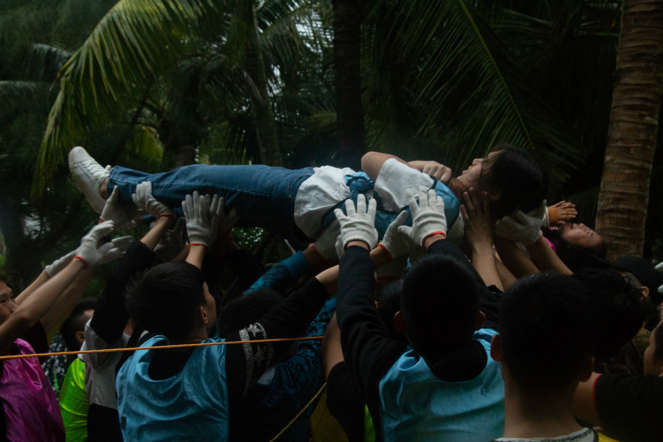 下午两点十五分,所有学员准时集合前往桂林洋十里金滩海滩进行户外实战演练,虽有风雨,但所有学员的情绪都非常高涨,毛毛虫接力大比拼后,所有学员都迅速活动开来,接下来每个小组表演了中午精心准备的团队才艺,惊心动魄的消防救援模拟、载歌载舞的团队展示赢得了现场的阵阵掌声,也吸引了众多路人前来观看。紧接着,唐老师对学员进行了心肺复苏的模拟操作,给大家灌输了极为重要的急救知识和急救意识。最后的实战项目考验的是团队配合的默契度和挑战不可能的勇气,所有人必须齐心协力穿越电网并从网的顶端跨越返回,整个过程不得触碰网线,否则前功尽弃,这项艰难的任务,靠一个人或几个人是无法完成的,只有团队密切配合,全力以赴才能做到。工程技术公司员工展现了他们应有的特质,最终他们不怕艰难险阻,突破了重围,顺利到达了理想的彼岸,但任务总会有人牺牲,留在最后的一名学员为团队付出了所有、承担了所有的责任,在他身上体现了当代老员工应有的担当,顺利通过的学员明白他们是怎么过去的,所有人甘愿一起承担责任,他们不会忘记那个默默付出的人,责任大家一起承担,这就是项目所带给我们的感受和启发。