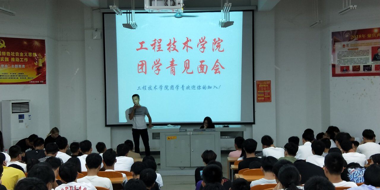 新生在看完团学青的宣传片和各个部门的部长的讲解下已经对团学青有了大概的解了。那么,接下来就是蔡奕明团总支副书记、李云飞等主席团发表讲话。主要是,第一工程技术公司团学青热烈欢迎18级的学弟学妹们。第二,欢迎同学们加入工程技术公司团学青。