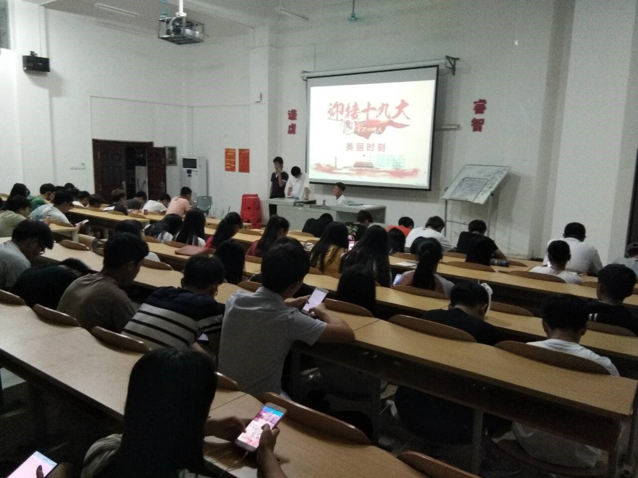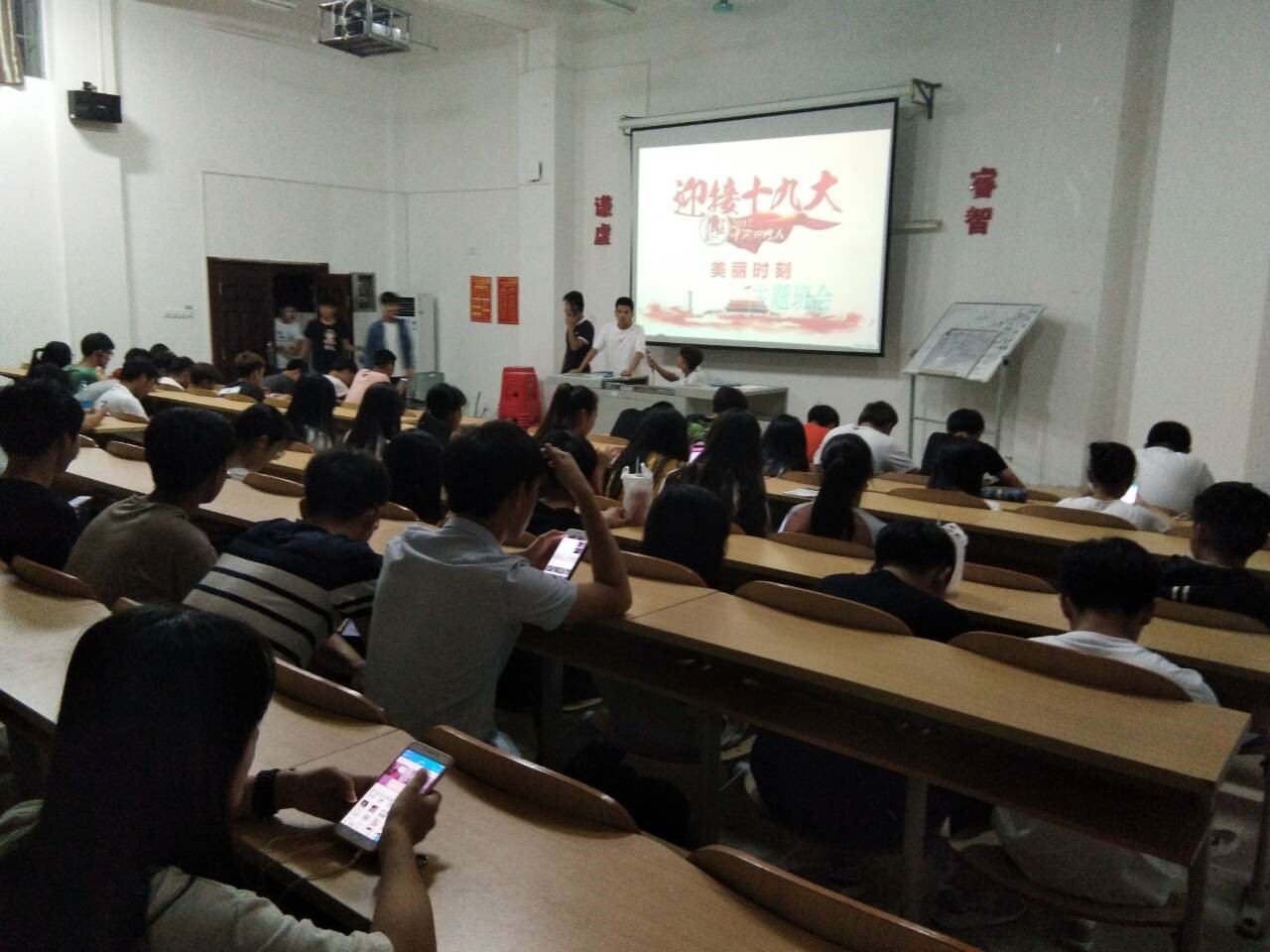 在班会上,各班班委在台上说出了自己对习近平主席的十九大报告的概括理解,表达出了对十九大胜利召开的喜悦之情,对十九大提出的现象和事件组织讨论,让十九大提出来的精神文明走进每个同学的心中。同时班委和辅导员为同学们对于十九大的一些问题答疑解惑,对一些重要的内容进行深刻的解读,让同学们对十九大理解的更加深刻。