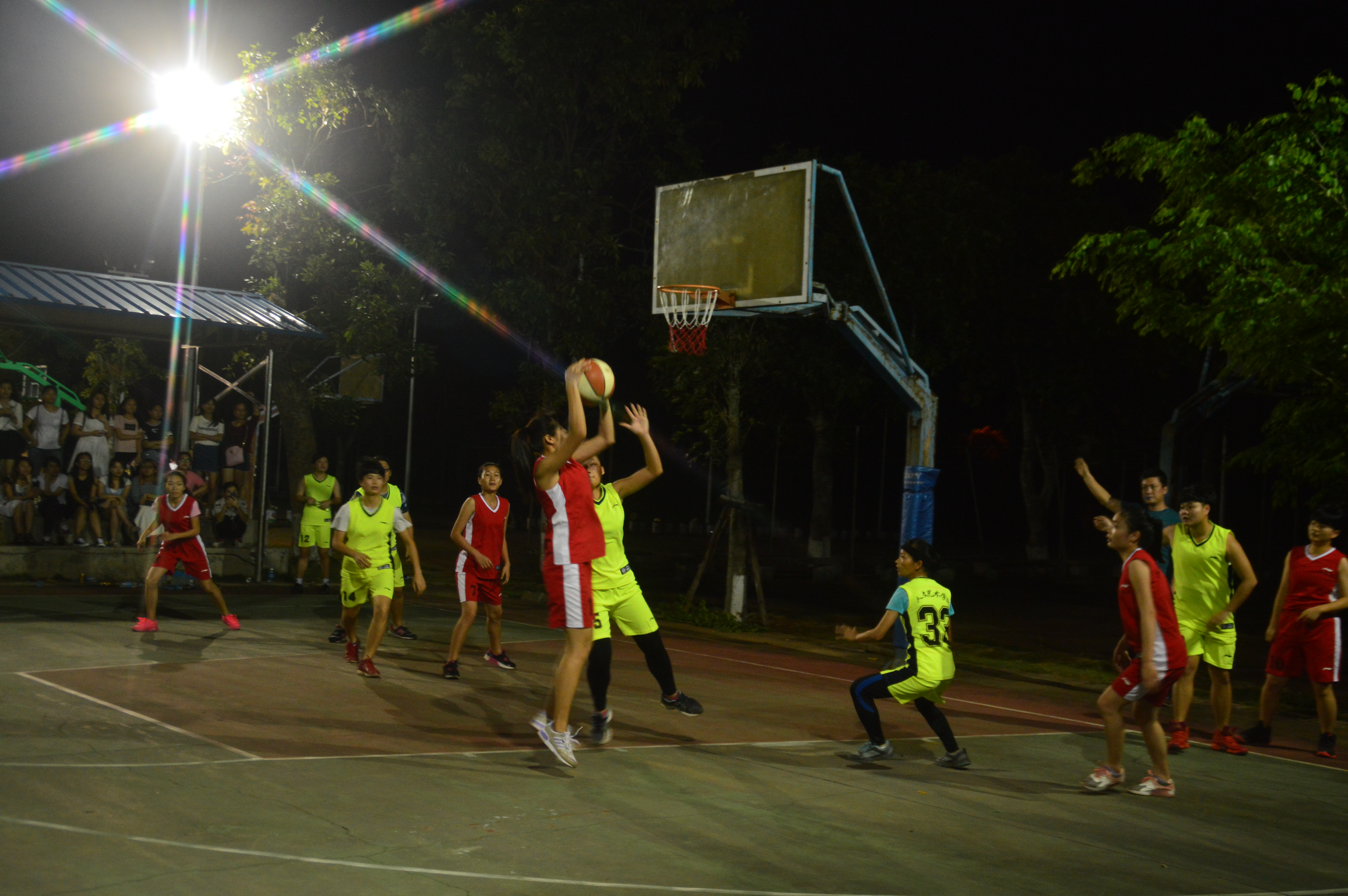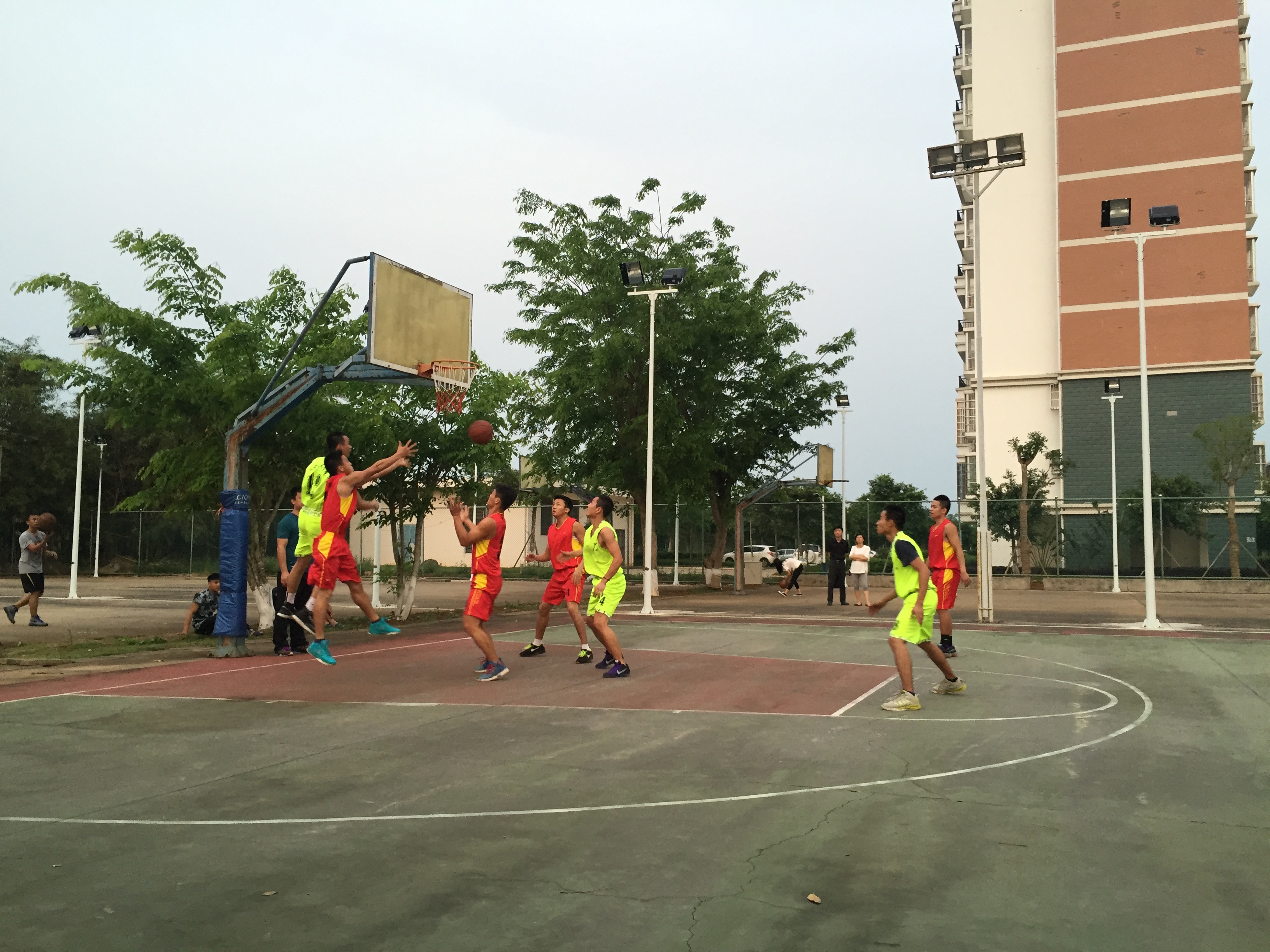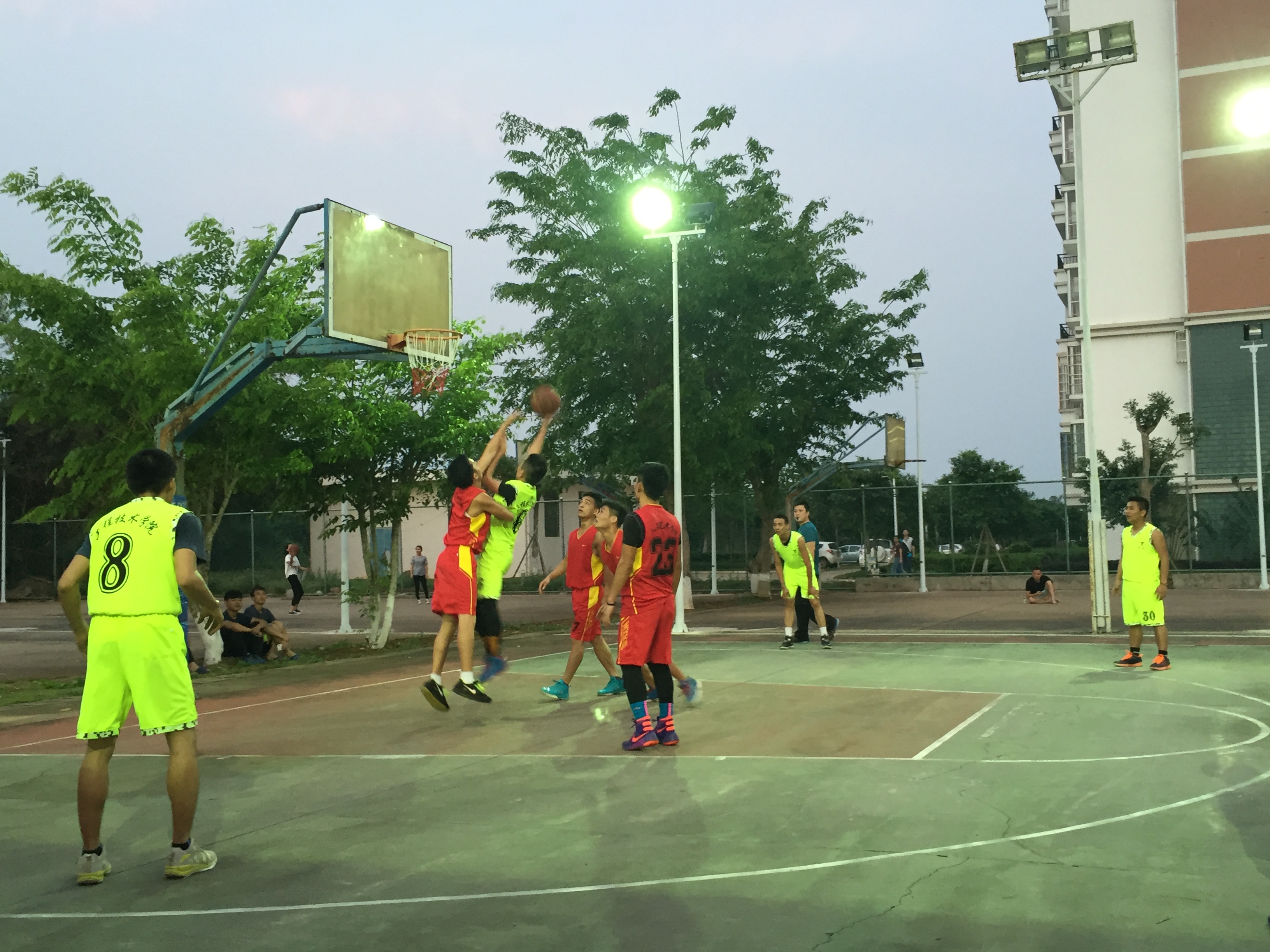 4月21日讯(工程技术公司 李京京报道)4月20日下午6时在篮球场展开了“青春篮球,魅力无限”太阳集团tyc4633第七届大学篮球赛亚军的争夺赛,男队vs人文艺术公司,女队vs人文艺术公司,下午5时50分观众和和队员已经相继到达,团总支书记梁其钰老师、陈亚芳老师到达现场观战给工程加油助威!
