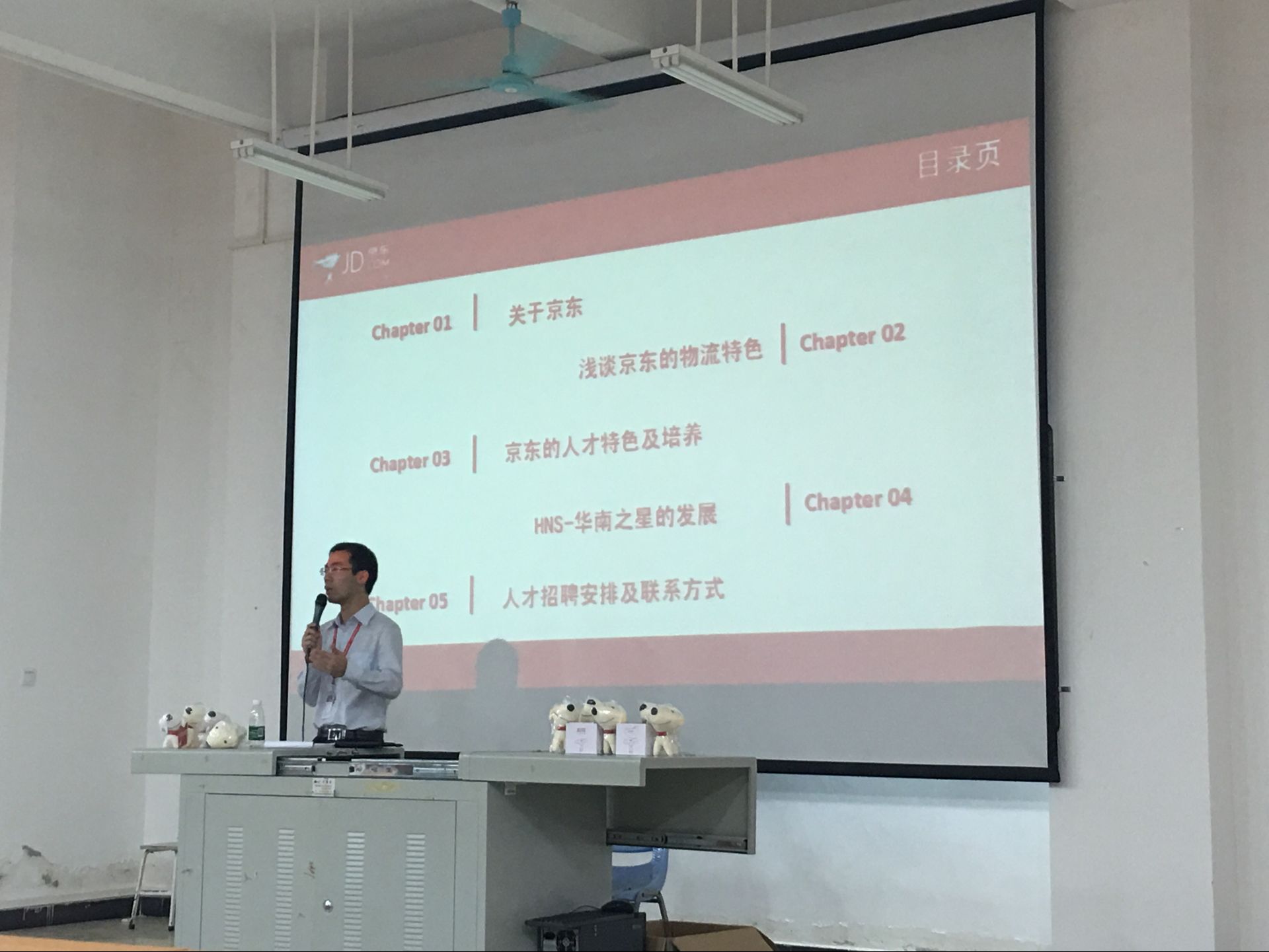 由京东商城华南分公司人力资源部梁经理为我们介绍了一系列关于京东商城概况特点以及招聘人才方面的要求,通过与同学们互动的方式来提高同学们的积极性,并为主动积极回答问题的同学发放小礼品,在场的同学都很积极活跃的听取专业导师讲解,他讲到企业注重的是个人价值观、能力,需要有诚信、有上进心、有创新能力的优秀人才。通过老师的字里行间让同学们更进一步了解京东商城,并明白我们应该向哪个岗位方向发展。老师也希望对京东商城有兴趣的同学在讲座结束后可以现场进行面试,给同学们提供一个实习的平台。