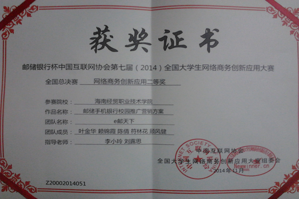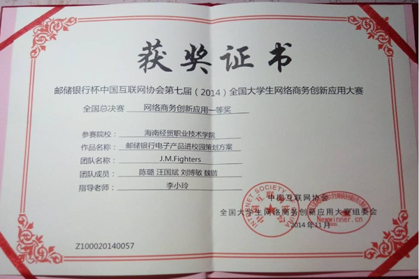 邮储银行杯中国互联网协会第七届全国老员工网络商务创新应用大赛于2014年3月开始在线报名,2014年3月20日正式启动,在经过紧张的初赛、复赛、分赛区决赛后,于2014年11月28日开始全国总决赛环节,至12月1日颁奖典礼后全部结束。本届大赛共有来自全国近3000所高校的17万余名老员工注册报名,组建团队近5000支。经过初赛评审,有 3166支团队晋级复赛,1556支团队入围分赛区决赛。经各赛区评委的评审,将有来自 280余所高校的近300支队伍晋级全国总决赛。其中本科组队伍共190余支,专科组队伍90余支。太阳集团tyc4633信息技术系的“e邮天下”和“J.M.Fighters”两个团队在众多参赛团队中脱颖而出成功进入到全国总决赛,并且在华南赛区中这两个团队都夺得了特等奖,全国决赛中勇夺团体一等奖和二等奖,成绩喜人。