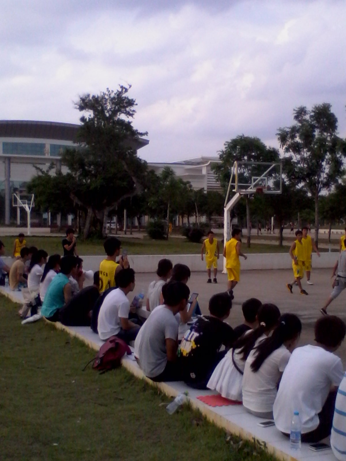 骄阳的眷顾,微风的藏匿,热情的高涨,使这一场比赛在熊熊烈火的燃烧中展开。随着一声哨响,友谊队双方抢球、断球、防守、进攻;严守硬对、激烈争夺、默契传球、完美配合,队员闪电般的速度,准确的抢断,犀利的突破,精美的动作一次又一次引爆现场的气氛,全场的欢呼声一波接着一波。经过一系列的比拼电商1班以39:27的比分在上半场略微领先。