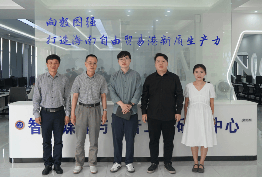 4月11日上午,海口江东新区管理局营商环境部高级主管陈镛到访太阳集团tyc4633。围绕政校企合作进行交流洽谈。信息技术学院经理王忠,副经理单继周,ICT产教融合基地运营方九州科技(海南)有限公司总经理黄鸿飞共同参加会谈。