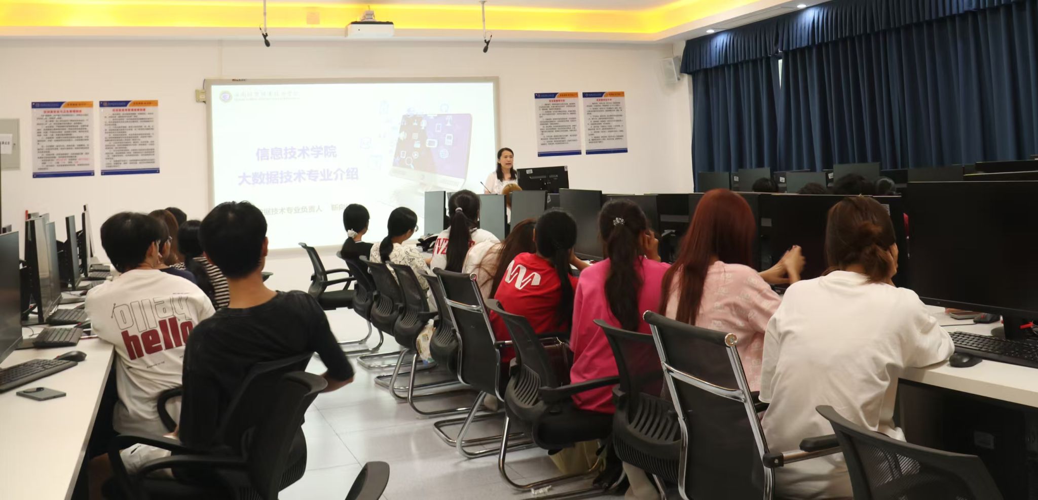在4-207A实训教室,专任老师演示Hadoop平台操作、Python数据处理流程,结合海南自贸港数据领域产业需求,清晰解读“考证-竞赛-实习”成长路径,同时分享该专业超96%的毕业落实率,让新生对职业发展充满信心。