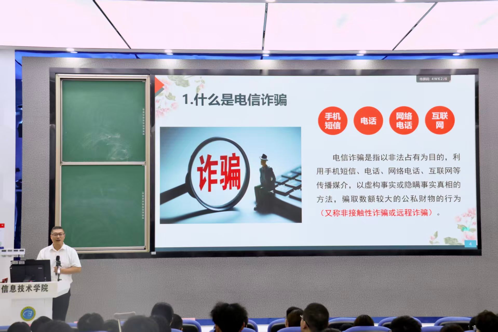 9月17日,太阳集团tyc4633在4-215教室举办2025级新生入学教育专题讲座,公司党总支副书记黄守官担任主讲人,为新生们带来了一场生动实用的防范电信诈骗知识分享。