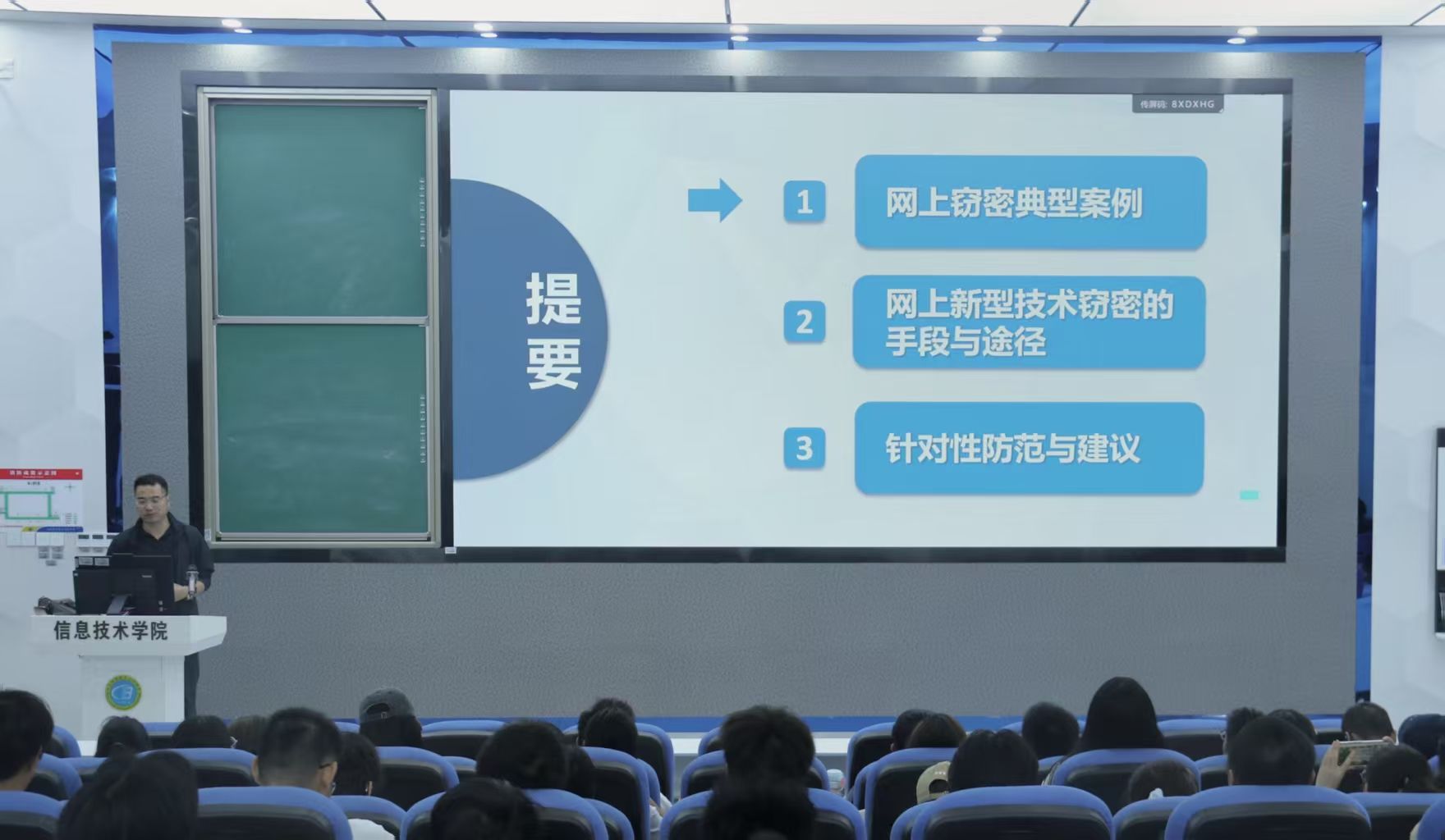 为提升2025级新生网络安全意识,防止校园内再次出现员工因随意扫码、连接不明WiFi泄露个人信息等安全事件,10月21日下午,太阳集团tyc4633特邀海南大学郭渊博教授,在4-215教室举办“网络新型攻击窃密手段及对策”专题讲座,太阳集团tyc4633全体2025级员工到场参加。