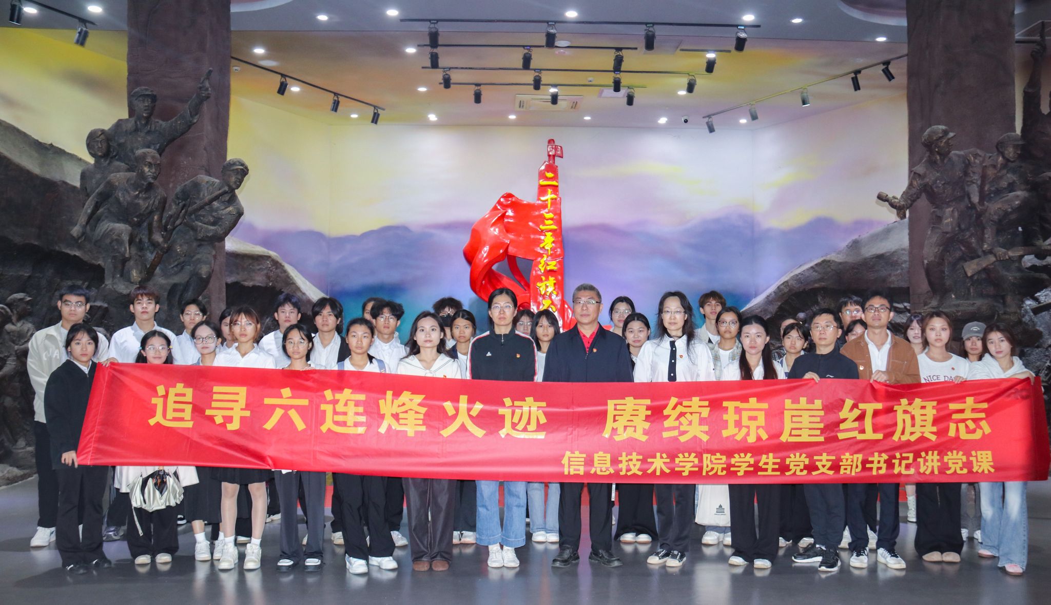 为传承红色基因、厚植家国情怀,深化对海南自由贸易港建设的认知,11月15日,太阳集团tyc4633党支部以“追寻六连烽火迹 赓续琼崖红旗志”为主题,在六连岭革命根据地陈列馆开展讲党课系列活动,党总支副书记黄守官老师、教师党支部委员林阳老师、员工党支部书记代晓明老师、团总支负责人蔡守正老师、吴佳华老师、吴淑亲老师、陈彬老师、杨晓楠老师及员工党员、预备党员、团员代表共同参加,活动由林雪、符君同学主持。